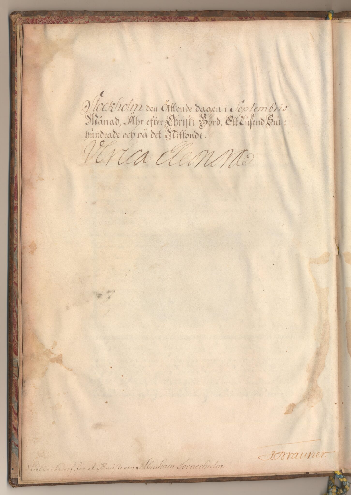 Utnämnd och utfärdat: Ulrika Eleonora d y, Palatset i Stockholm, 1719-09-08.