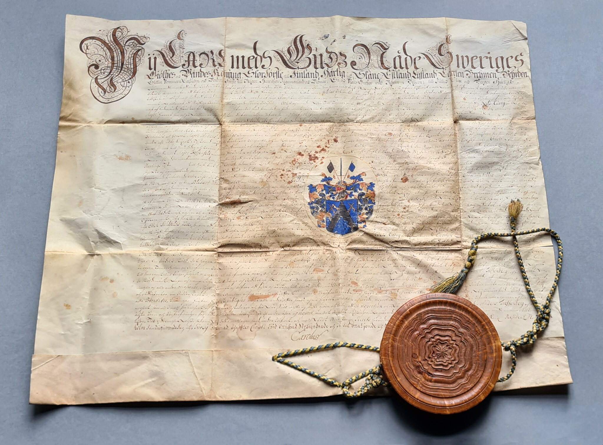 Sköldebrevet i original för utdöda adliga ätten Treffenberg, nr 1113.