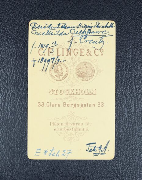 Ulfsparre af Broxvik, Hedvig Elisabet Matilda (TILDA), född grevinna Creutz, nr 68. Född 1819-03-13. Död 1899-09-07.