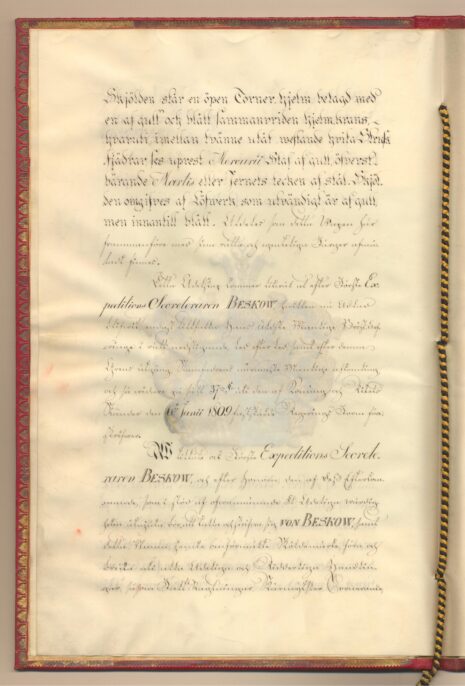 Sköldebrevet i original för utdöda adliga ätten von Beskow, nr 2299.