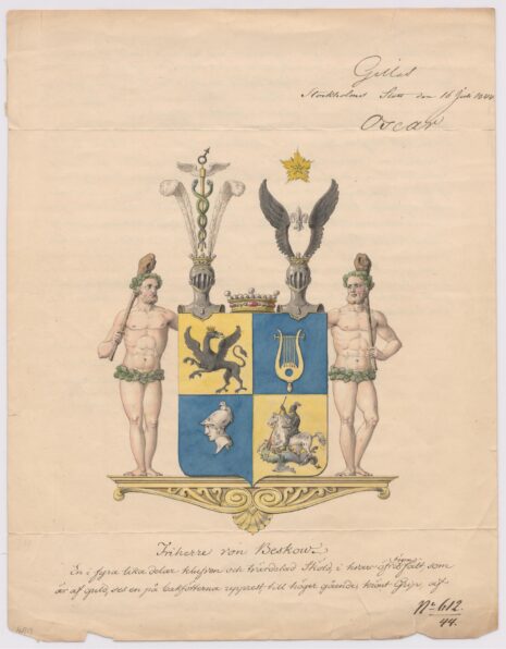 Approberad vapenritning för utdöda friherrliga ätten von Beskow, nr 399.