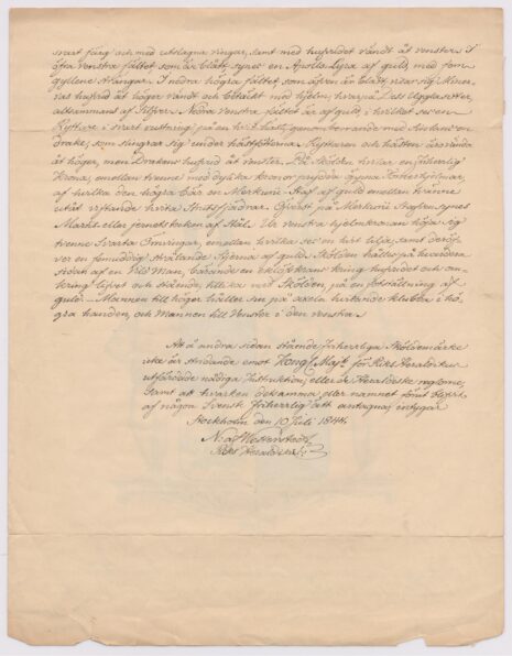 Utförd: Riksheraldiker Niklas Joakim af Wetterstedt, Stockholm, 1844-07-10.