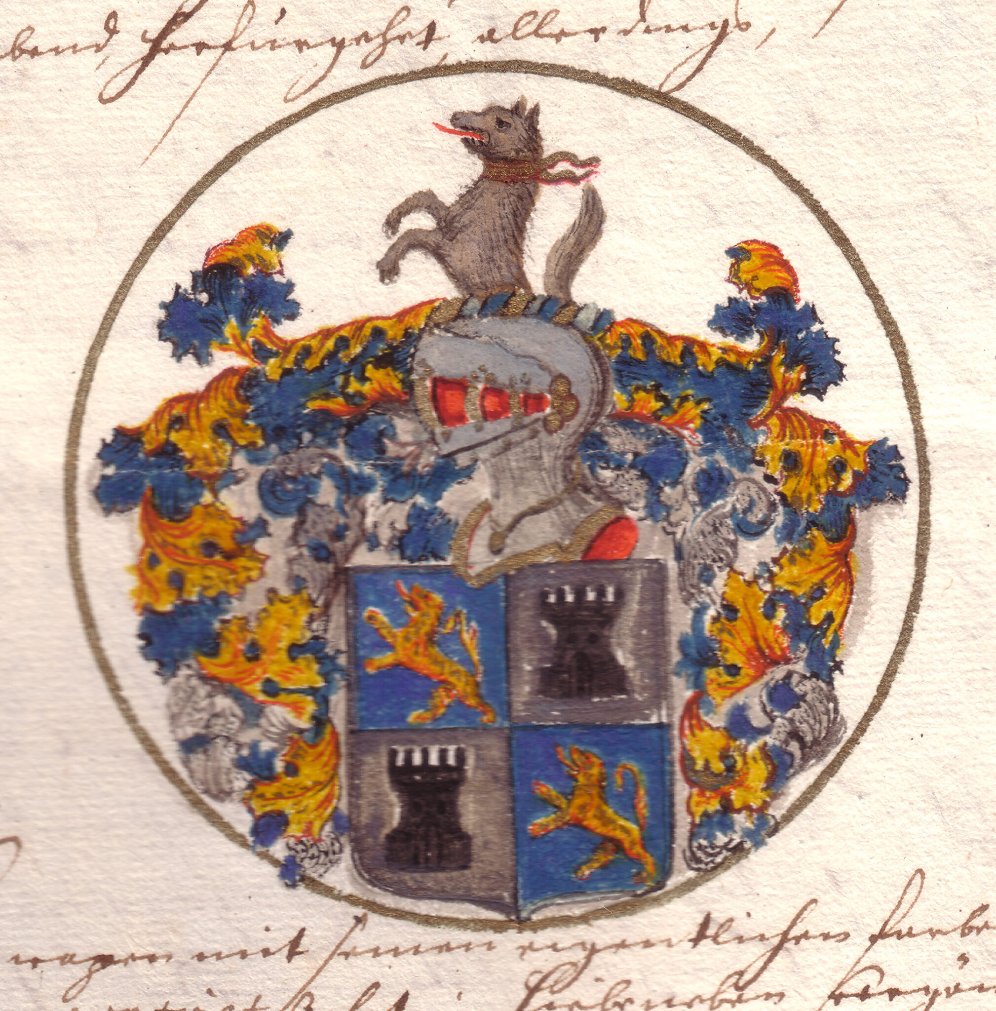 Sköldebrevet i avskrift för utdöda adliga ätten von der Wolffesburg, nr 1237.