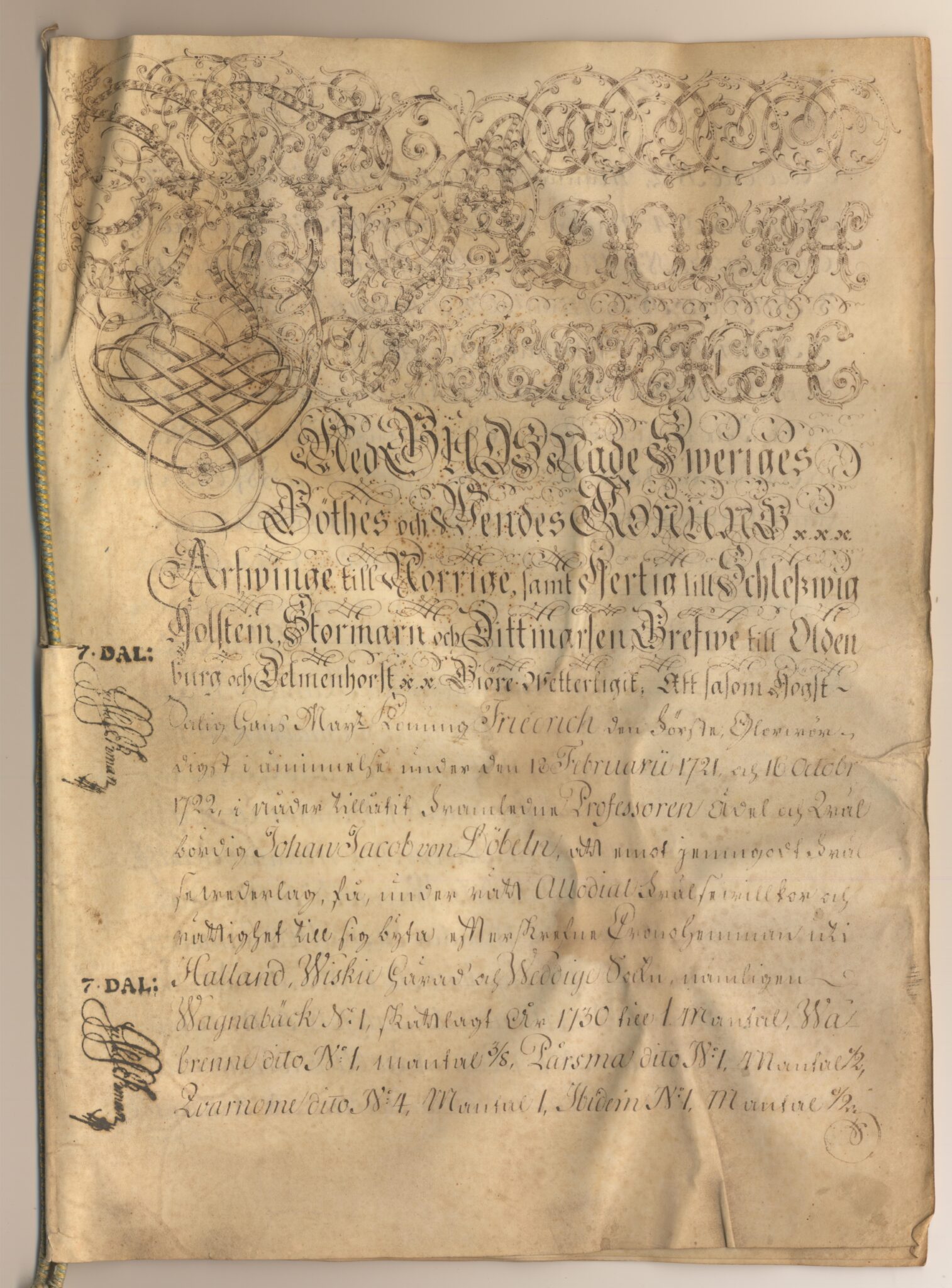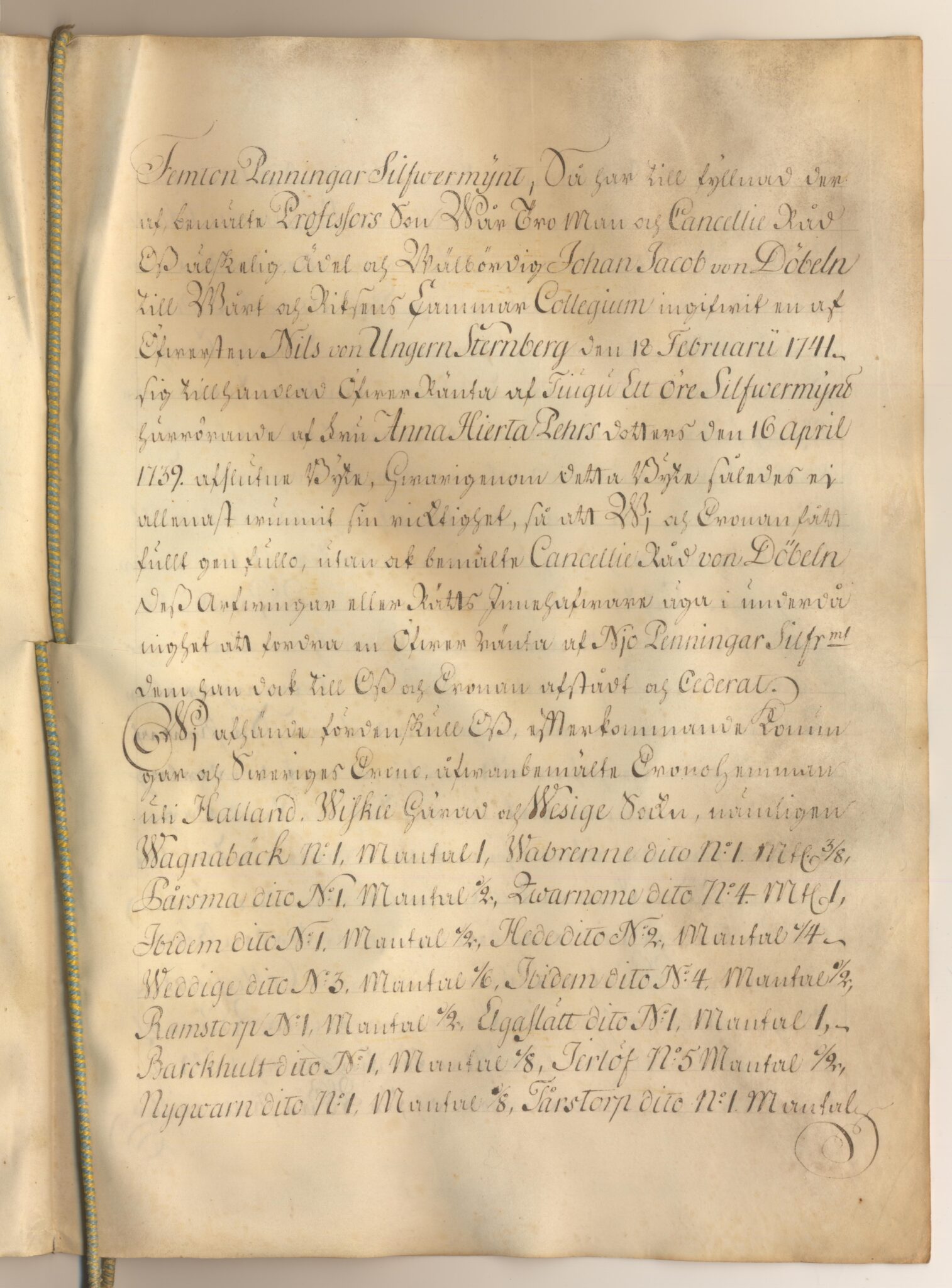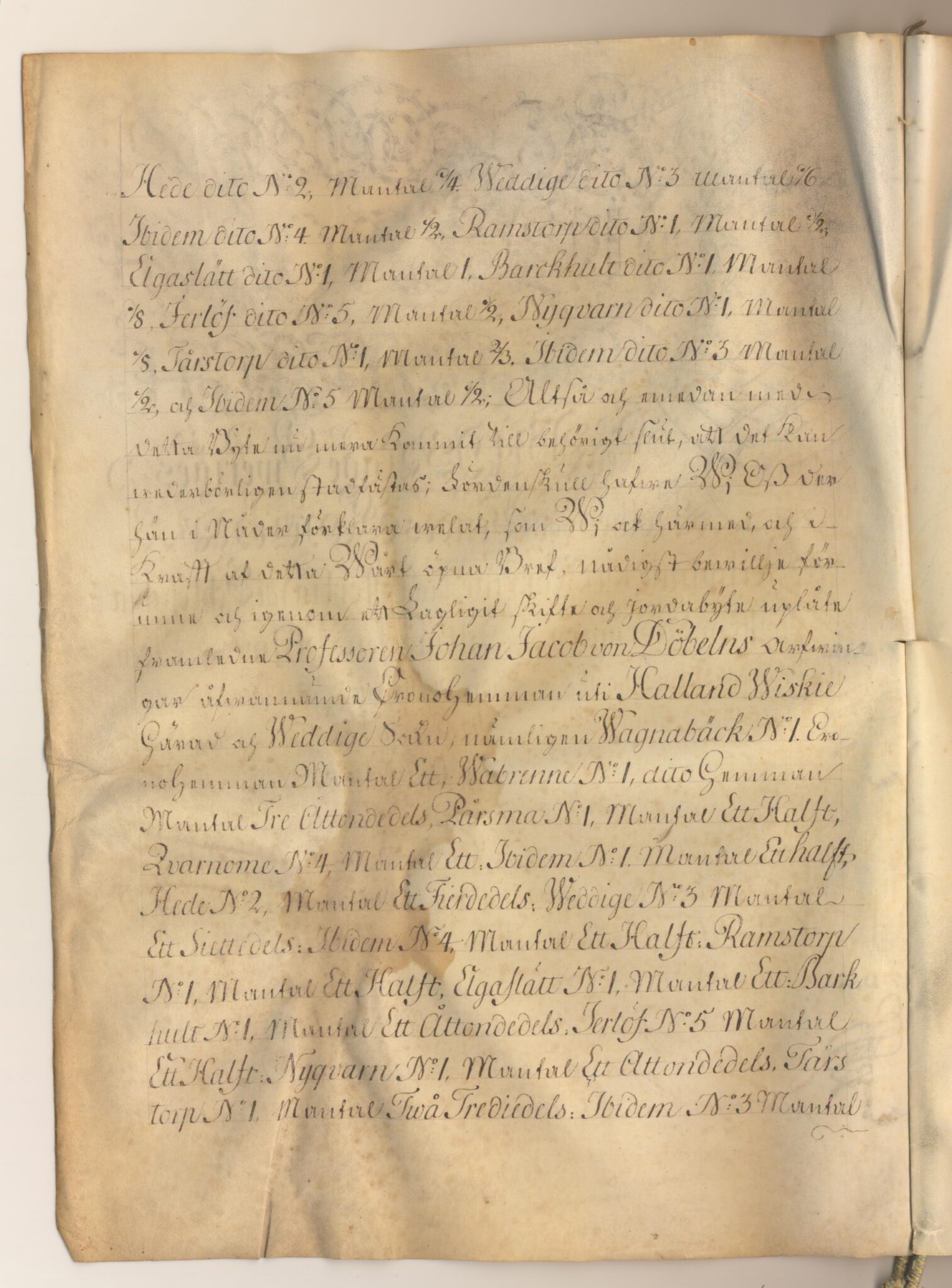 Bytes bref till framlidne professorn Johan Jacob von Döbelns arvingar att till sig byta från krono till frälse hemman Wagnabäck med flera i Wedinge socken Wiskie härad och Halland.