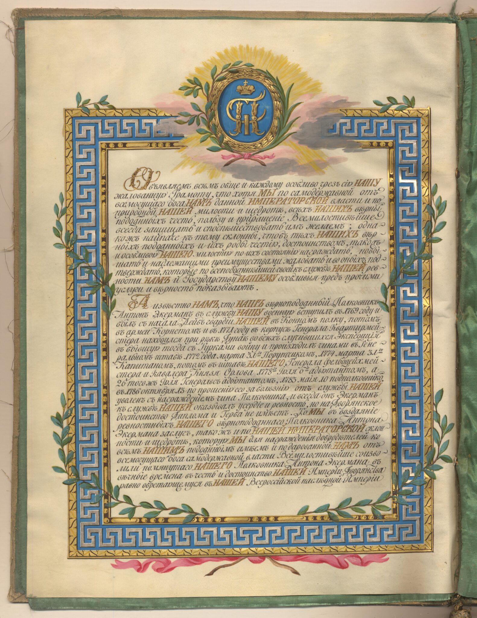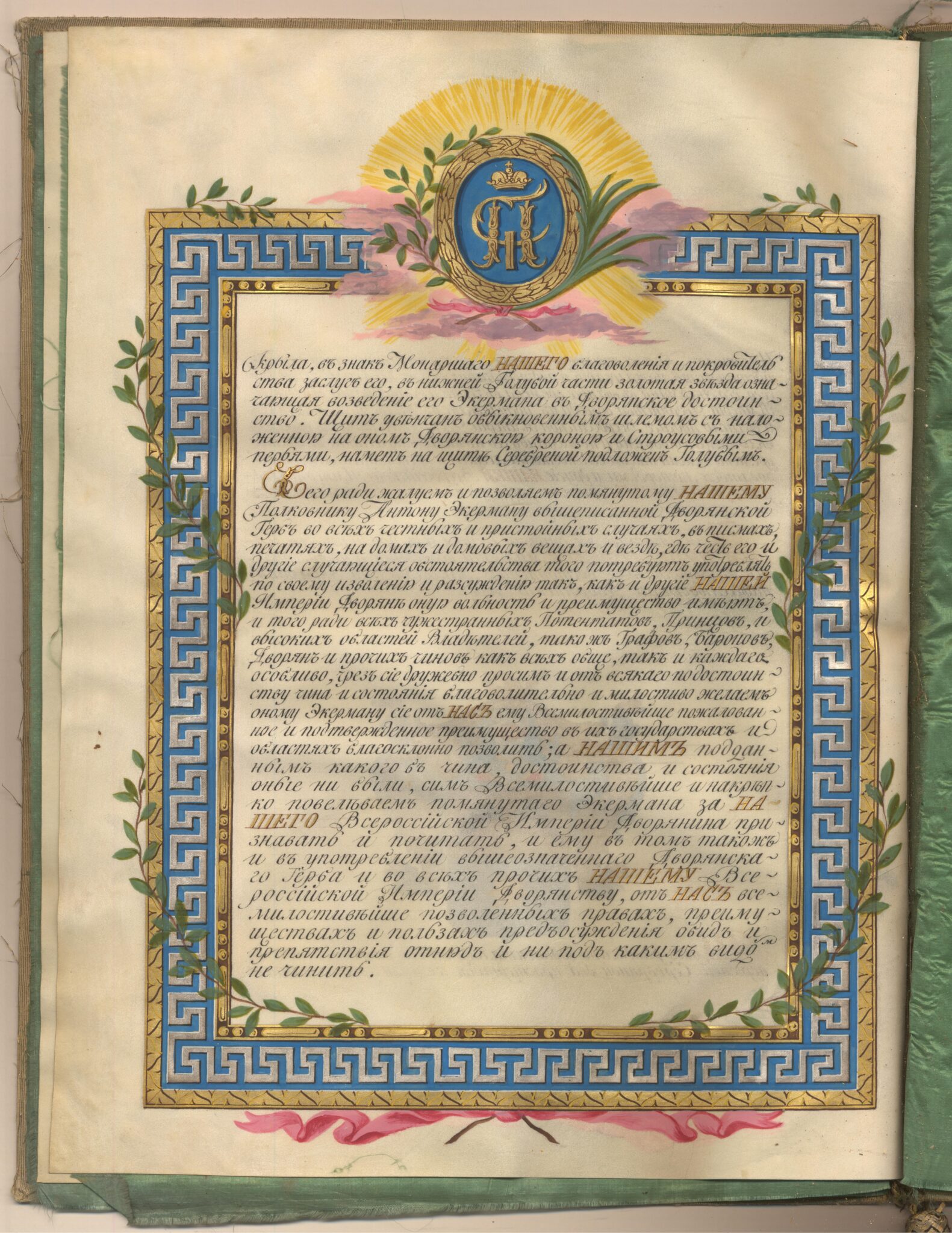 Utnämnd och utfärdat: Paul I (kejsare av Ryssland), 1798-08-27.
