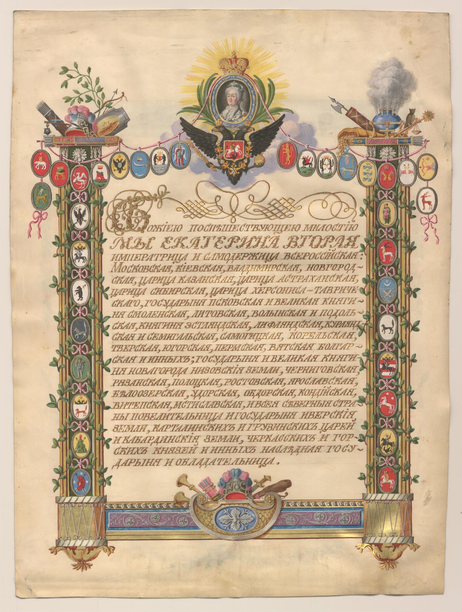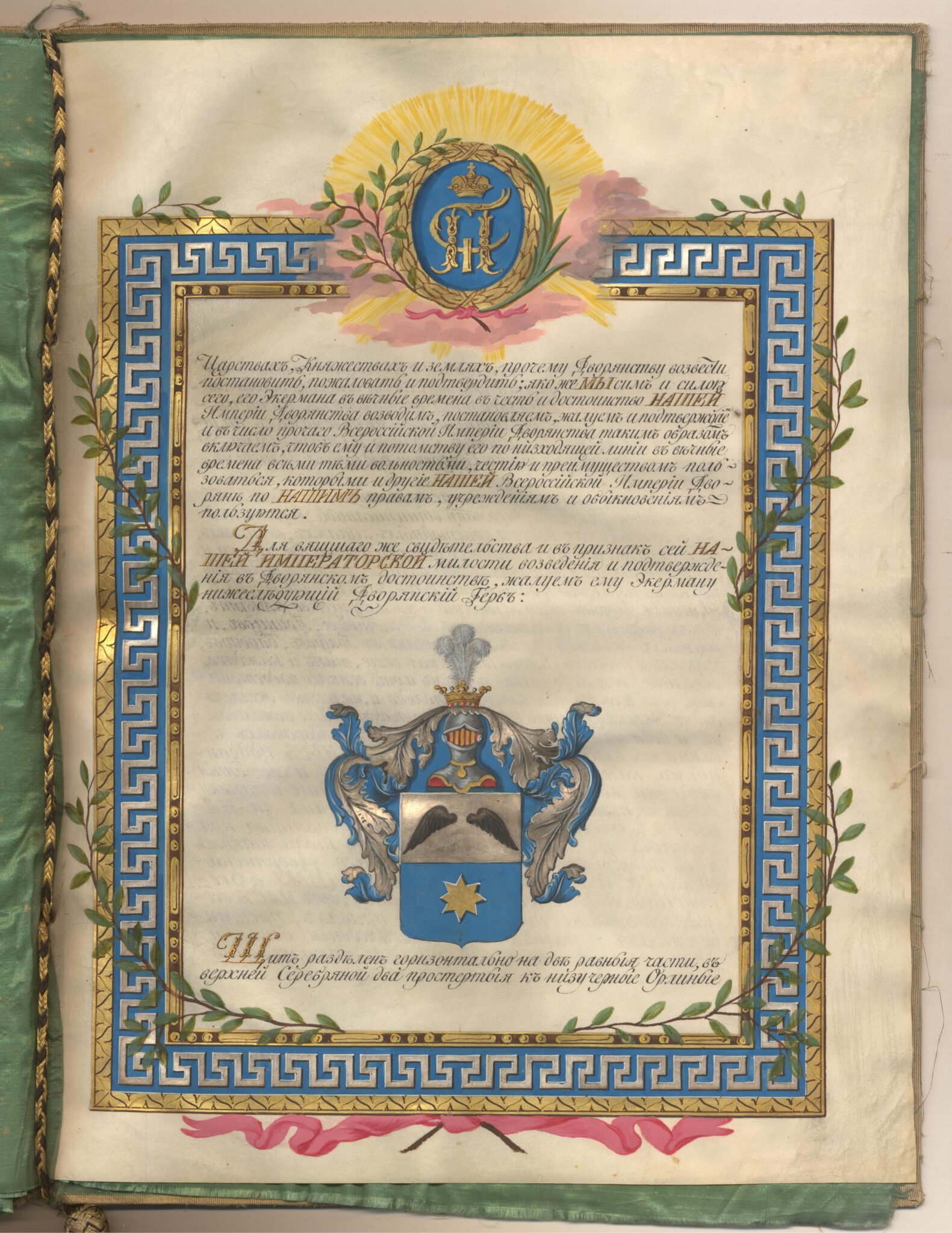 Ryskt sköldebrev i original för adliga ätten von Eckermann.