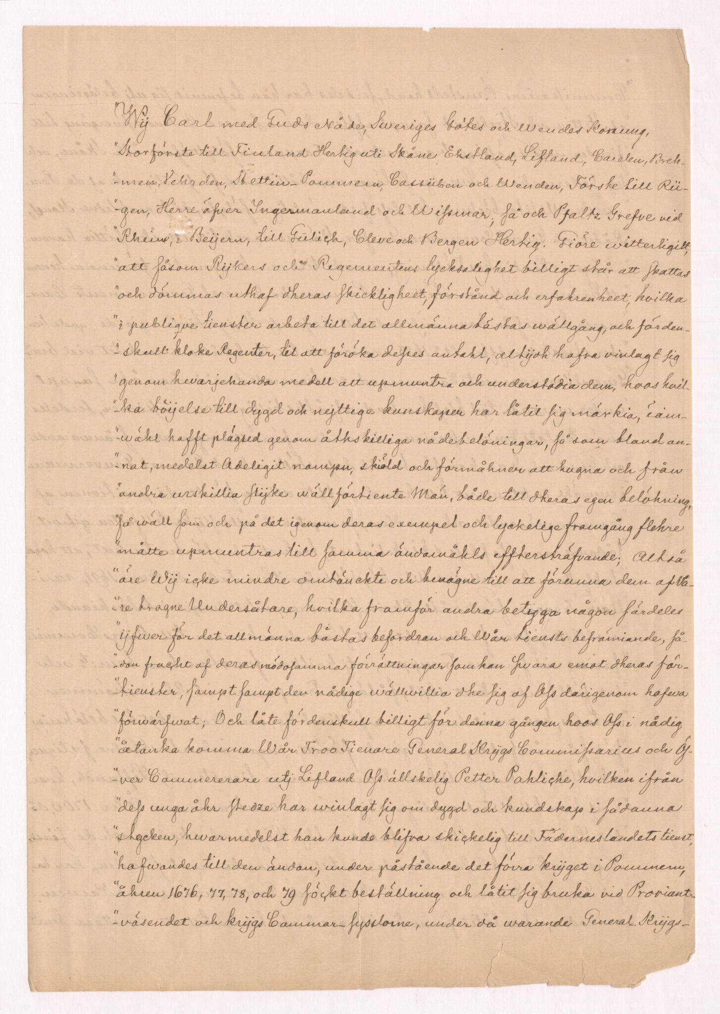 Utnämnd och utfärdat: Karl XII, huvudkvarter i Ravitz i Storpolen, 1705-05-20.