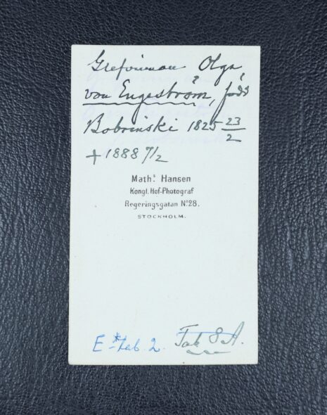 Engeström, von, OLGA, född grevinna Bobrinska. Född 1825-02-23. Död 1888-02-07.