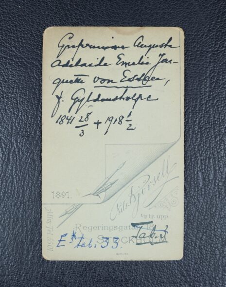 Essen, von, Augusta Adelaide Emilie JACQUETTE, född grevinna Gyldenstolpe, nr 35. Född 1841-03-28. Död 1918-02-01.