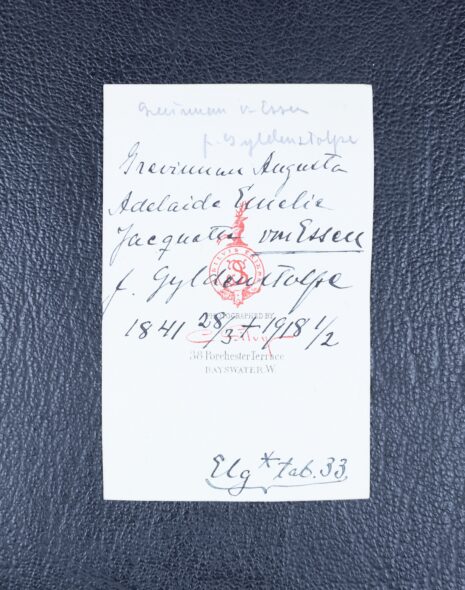 Essen, von, Augusta Adelaide Emilie JACQUETTE, född grevinna Gyldenstolpe, nr 35. Född 1841-03-28. Död 1918-02-01.
