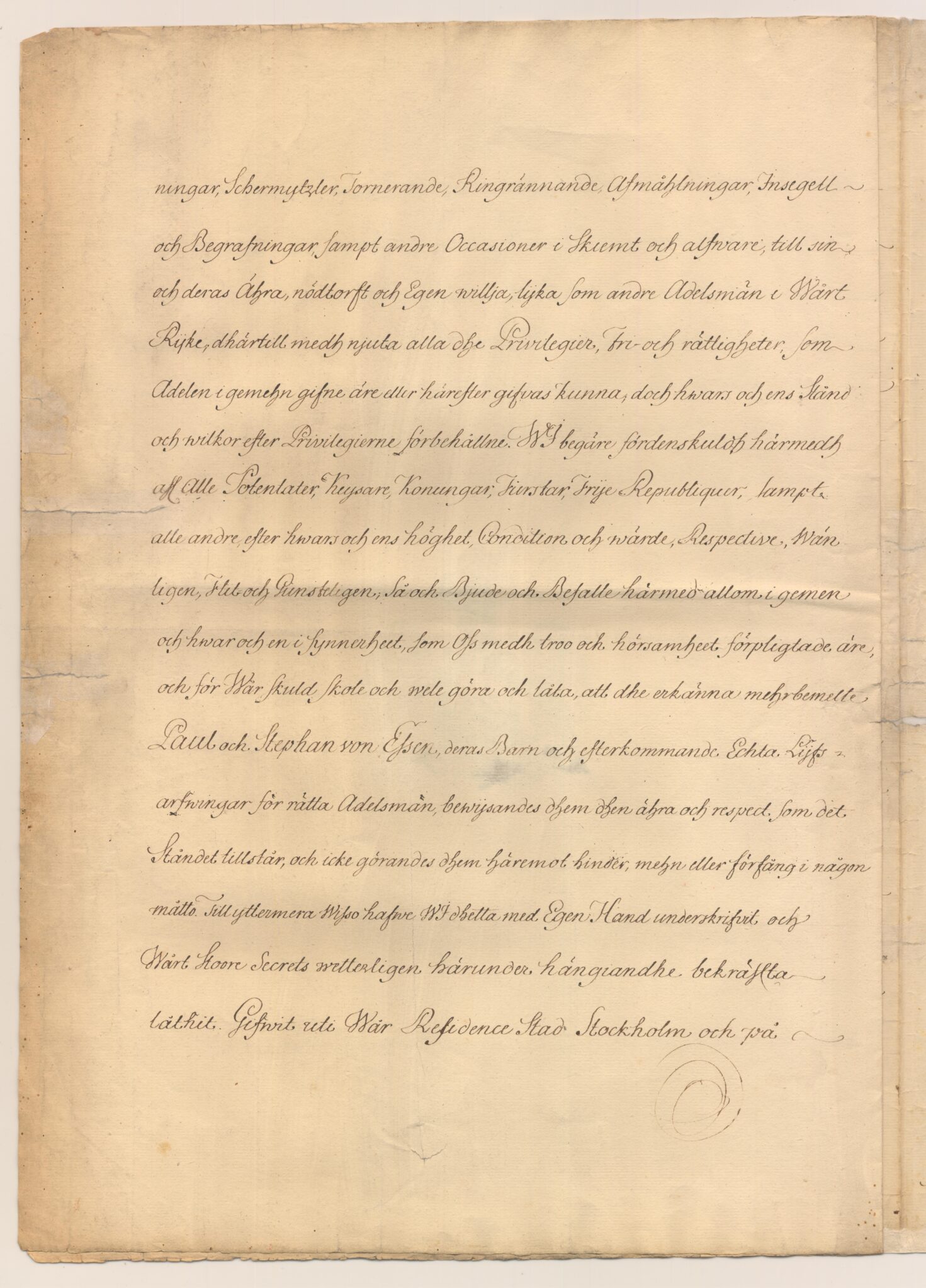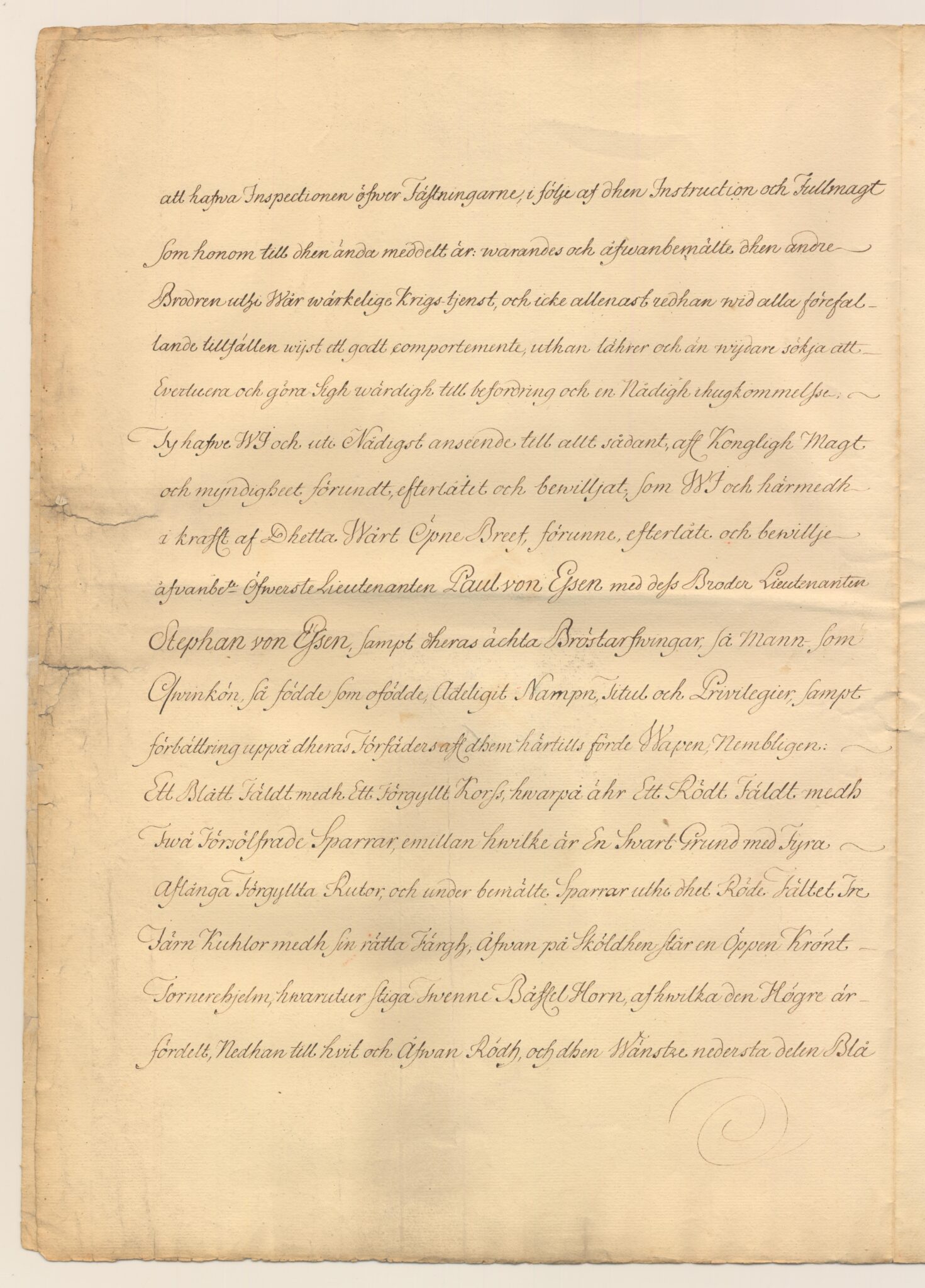Naturalisationsbrevet i kopia för utdöda adliga ätten von Essen, nr 1957.