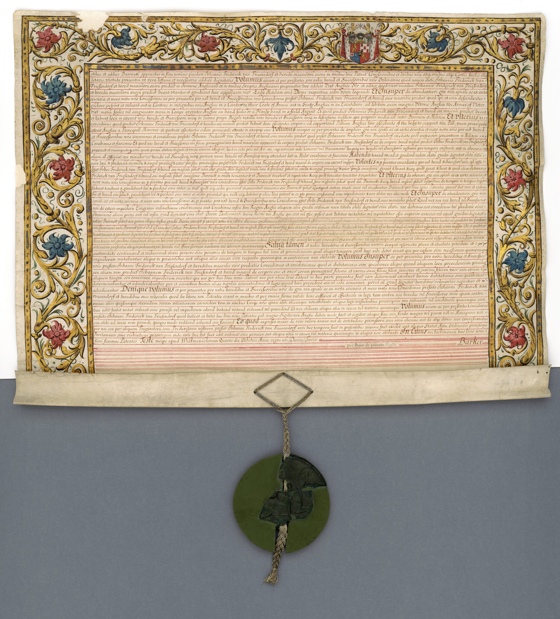 Engelskt baronetbrev i original för friherrliga ätten von Friesendorff, nr 200.