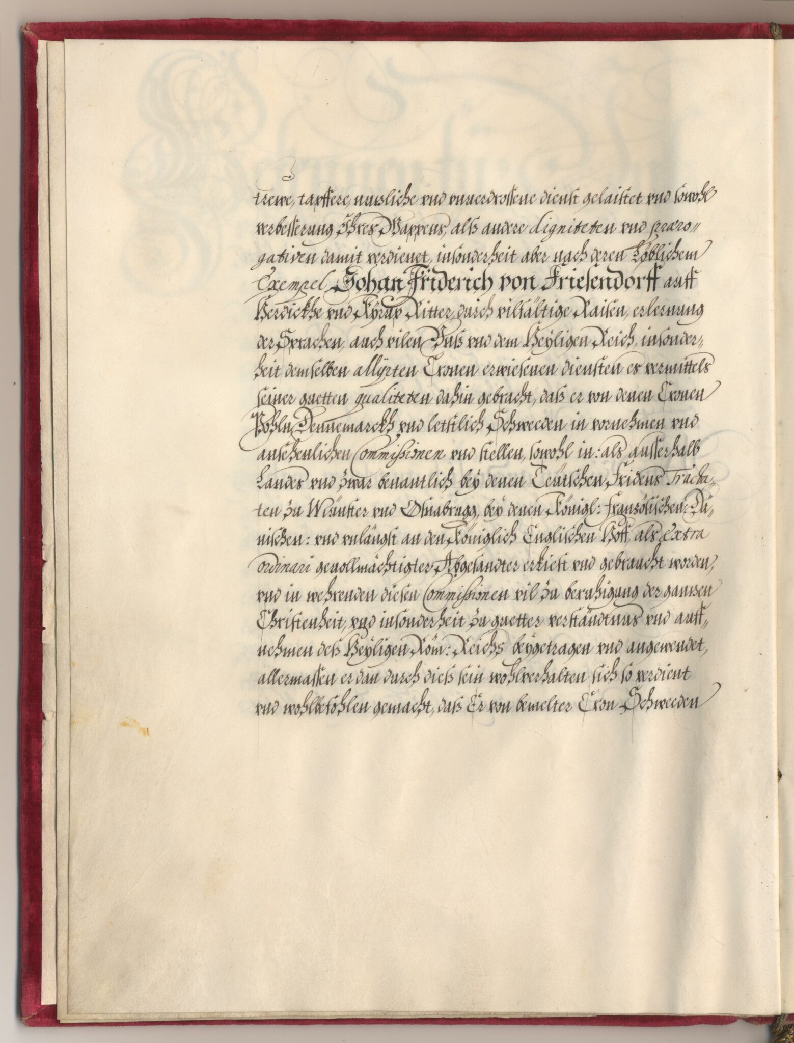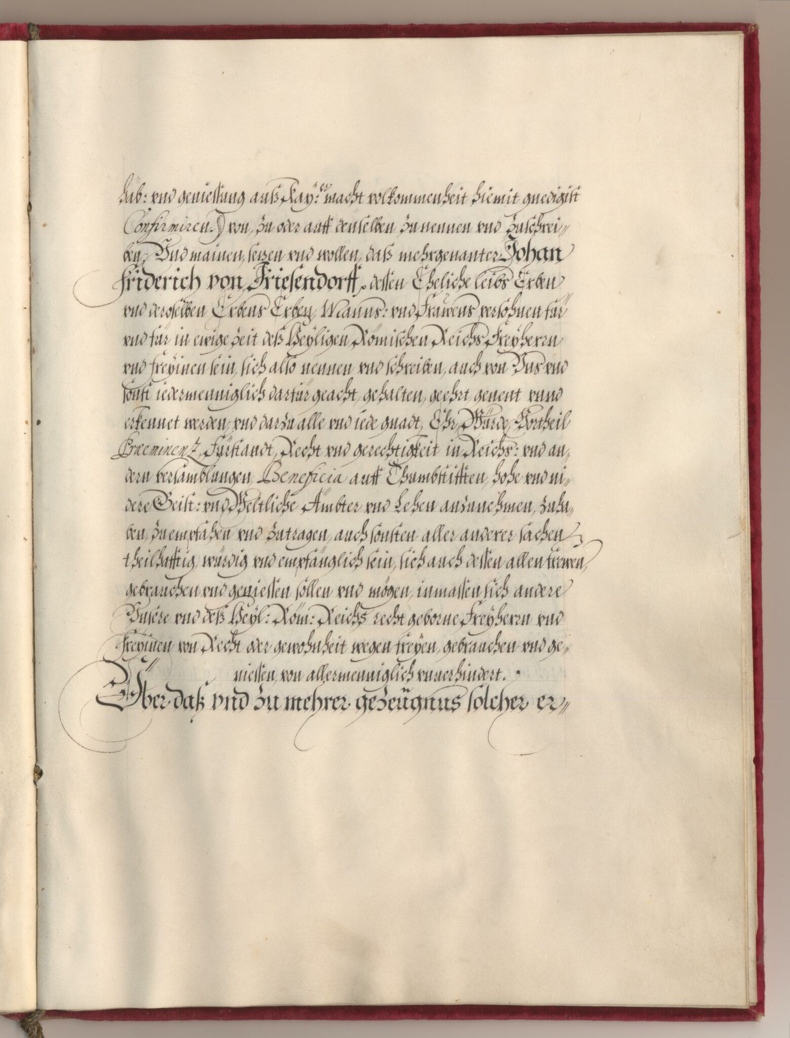 Tysk-romerskt friherrebrev i original för friherrliga ätten von Friesendorff, nr 200.
