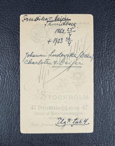 Geijer, von, Johanna LUDOVIKA (Vika) Charlotta, född Lundberg. Född 1862-04-23. Död 1923-04-30.