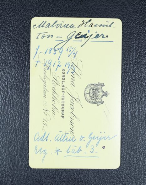 Geijer, von, Eva MALVINA Charlotta Louise, född grevinna Hamilton, nr 86. Född 1859-04-15. Död 1917-03-19.