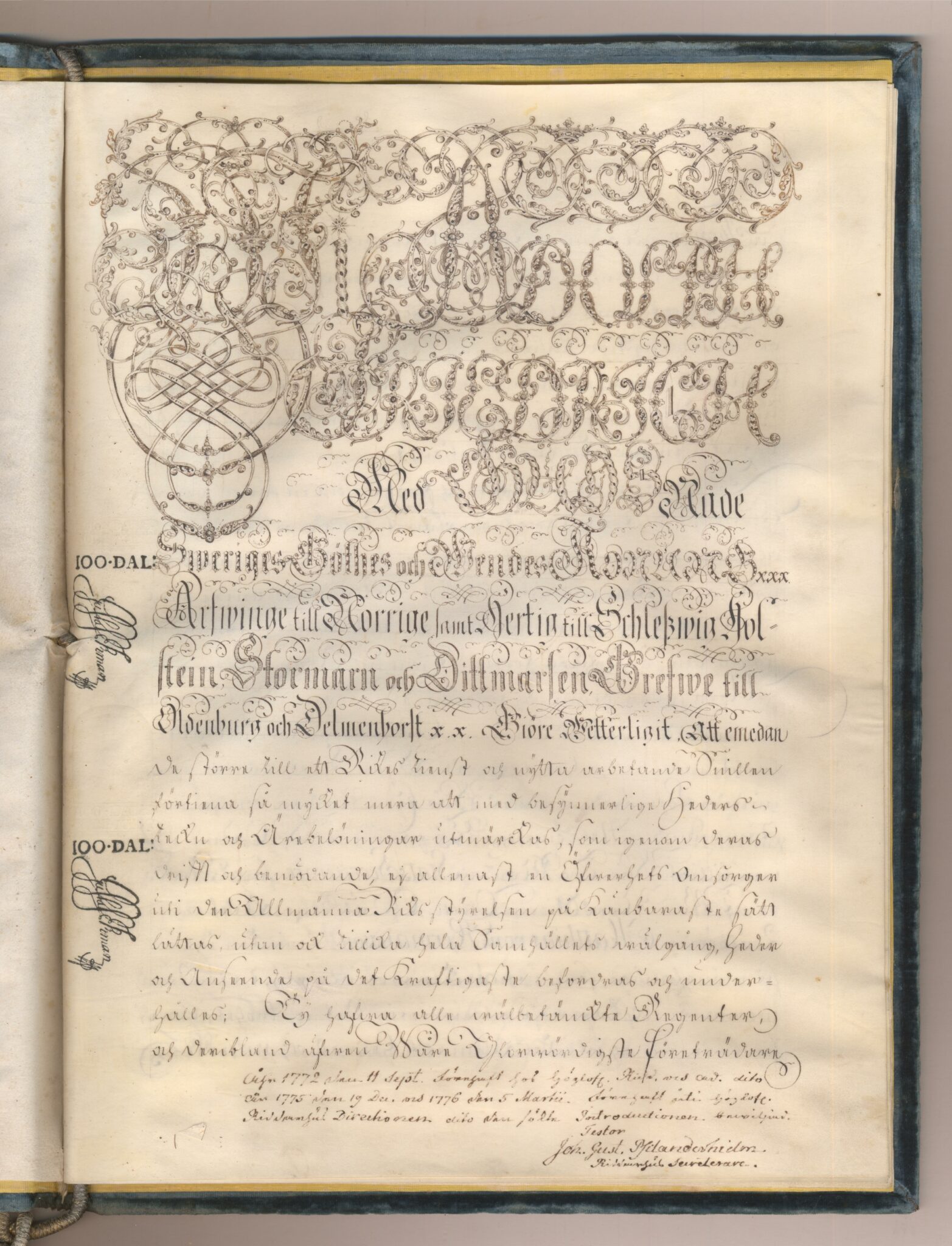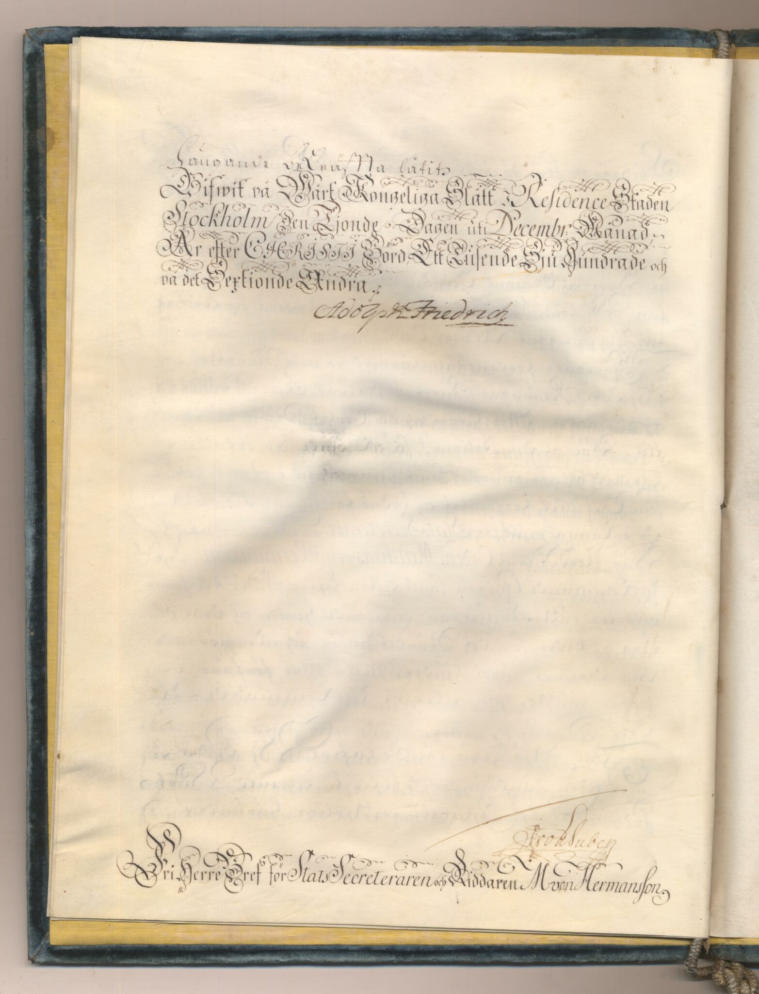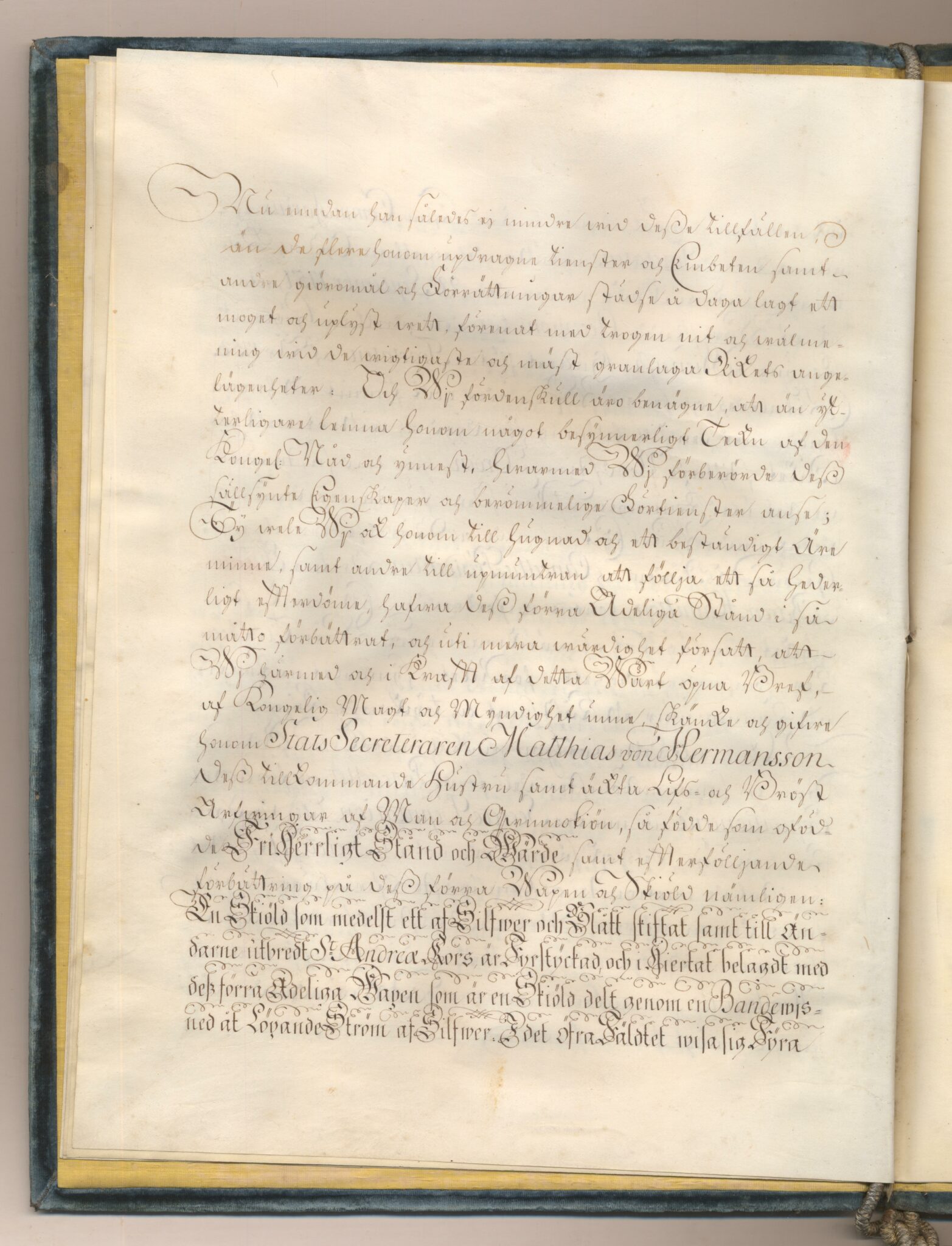 Friherrebrevet i original för utdöda friherrliga ätten von Hermansson, nr 256.