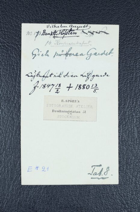 Hofsten, von, BENGT Vilhelm August. Född 1847-02-18. Död 1880-05-13.