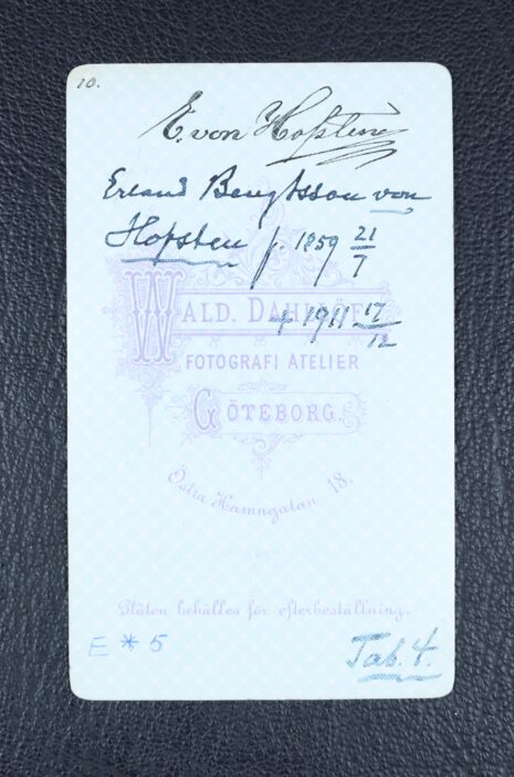 Hofsten, von, ERLAND Bengtsson. Född 1859-07-21. Död 1911-12-17.
