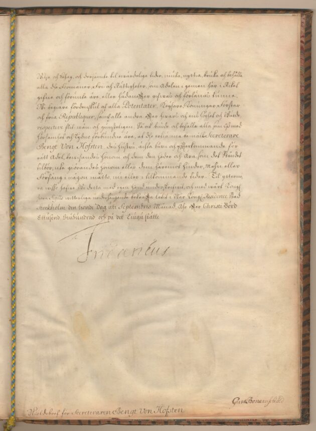 Utnämnd och utfärdat: Fredrik I, Stockholm, 1726-09-10.