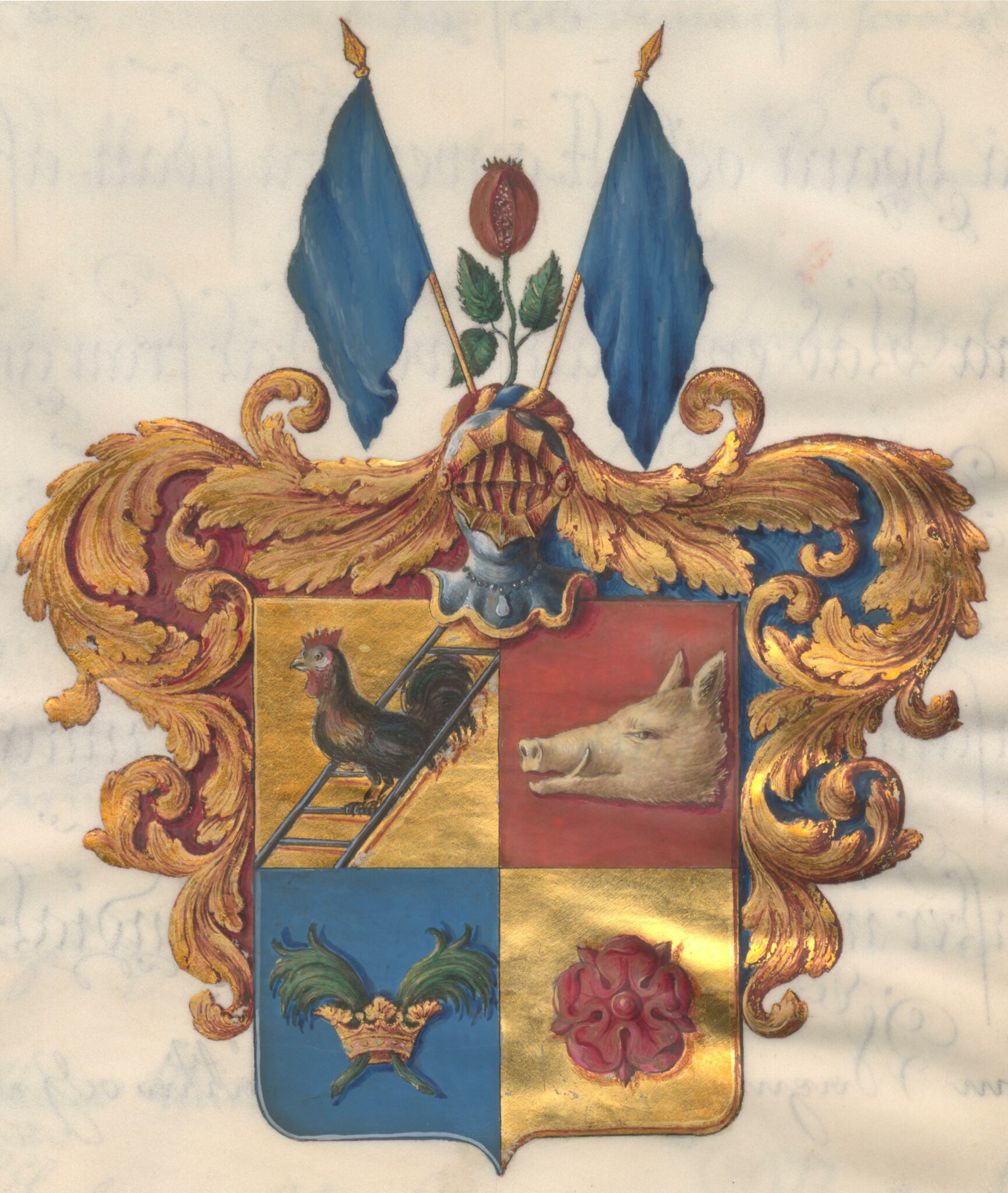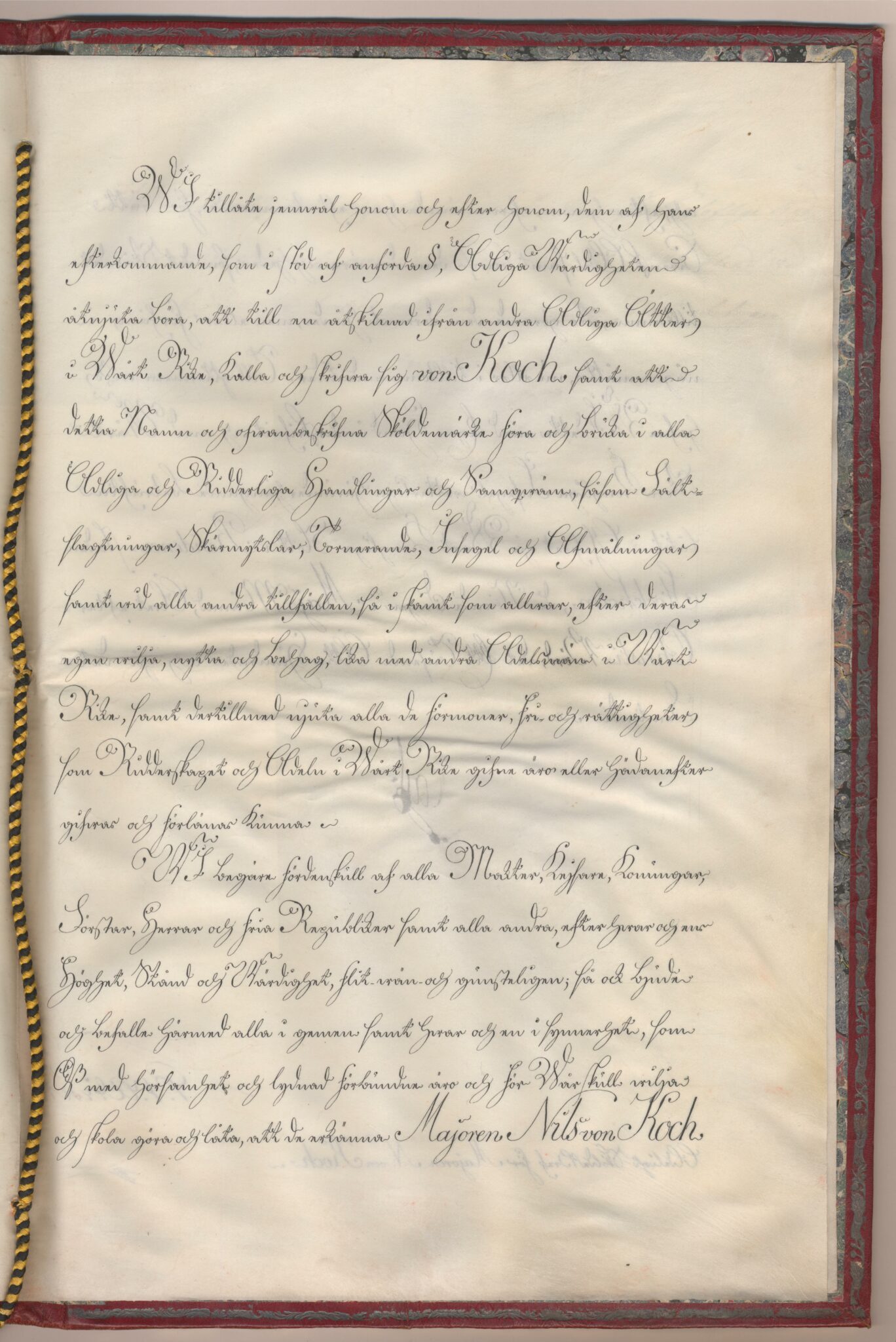 Sköldebrevet i original för adliga ätten von Koch, nr 2244.