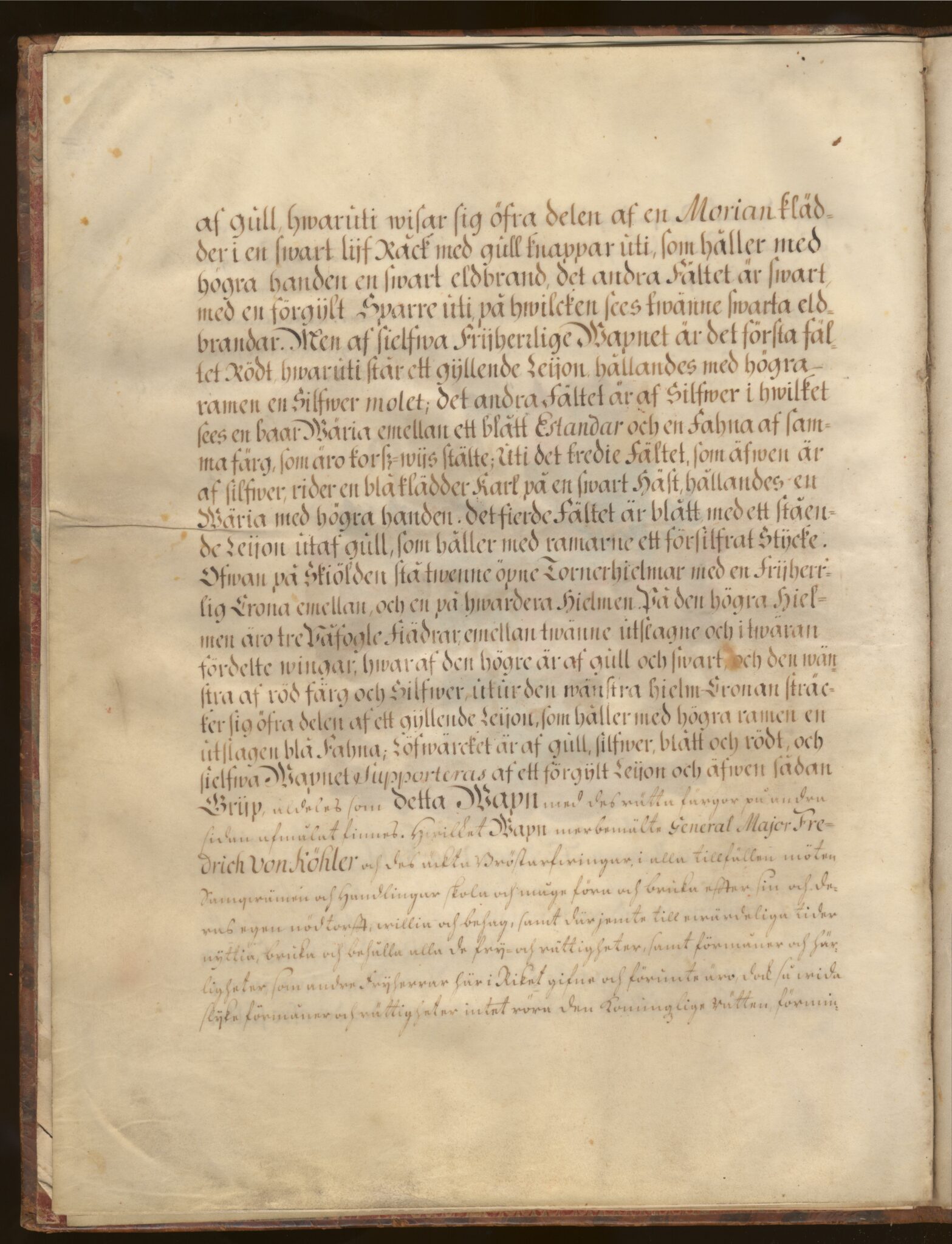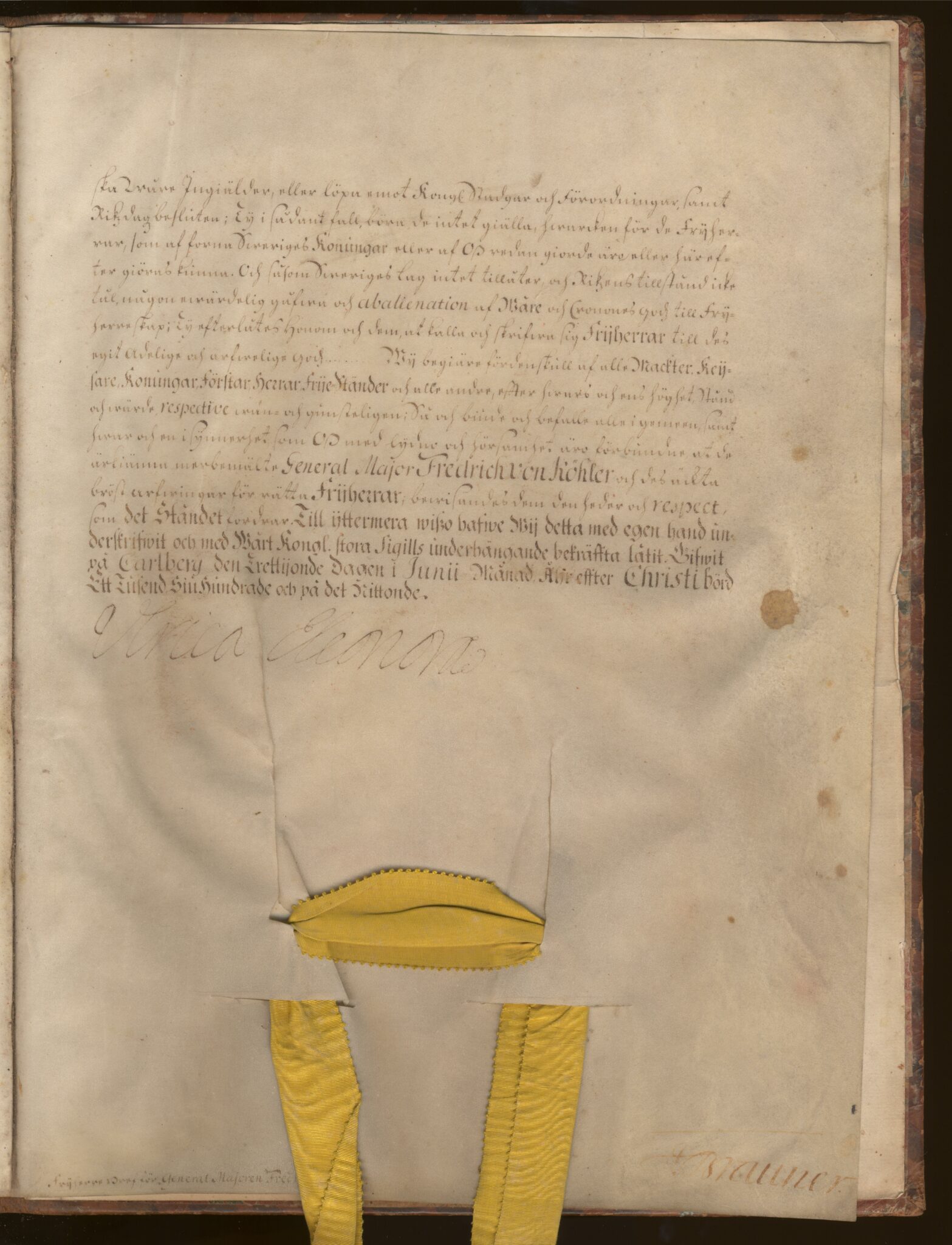 Friherrebrevet i original för friherrliga ätten von Köhler, nr 167.