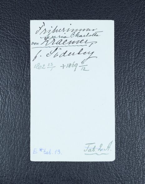 Kræmer, von, Maria CHARLOTTA, född Söderberg. Född 1802-01-21. Död 1869-12-06.