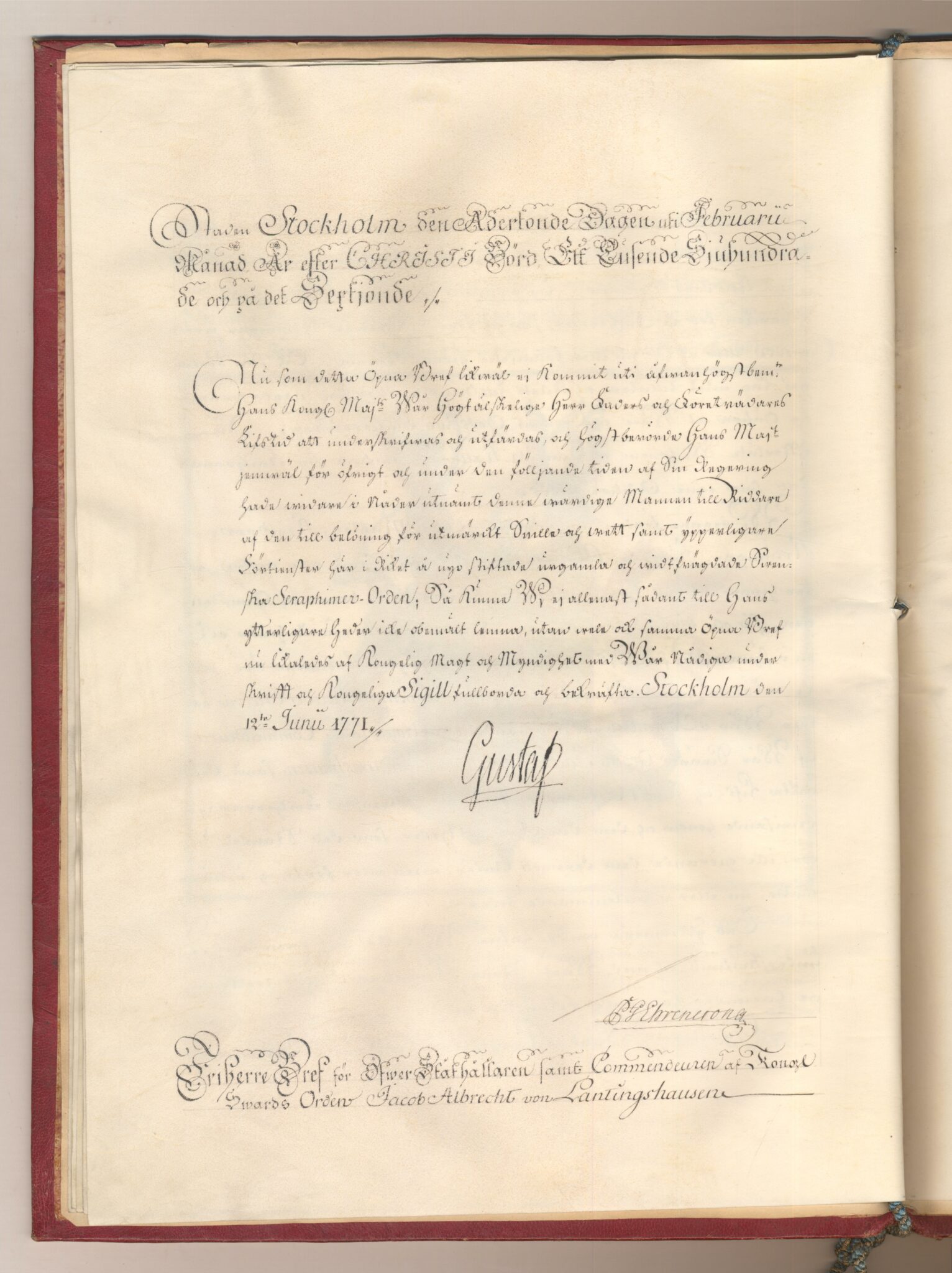 Utfärdat: Gustav III, Stockholm, 1771-06-12.