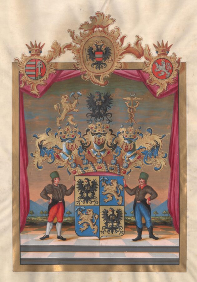 Österrikiskt friherrebrev för friherrliga ätten von Leithner.
