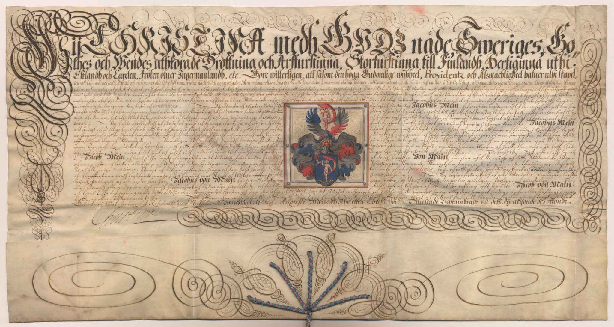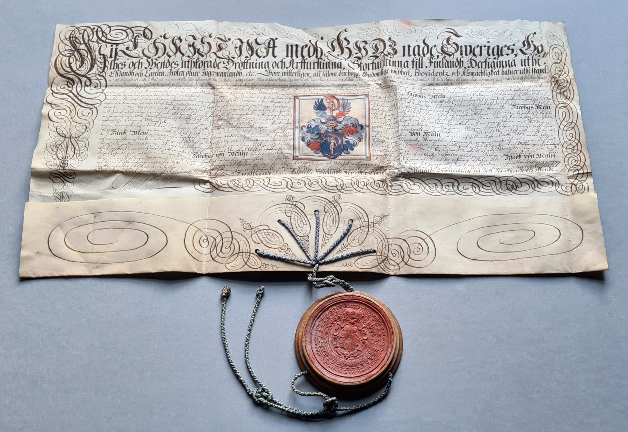Sköldebrevet i original för utdöda adliga ätten von Main, nr 512.