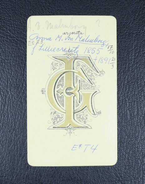 Malmborg, von, ANNA Margareta, född friherrinna Lilliecreutz, nr 215. Född 1855-10-17. Död 1891-03-23.