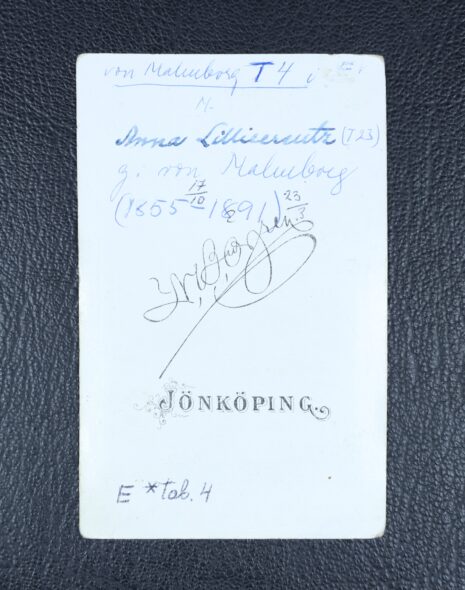 Malmborg, von, ANNA Margareta, född friherrinna Lilliecreutz, nr 215. Född 1855-10-17. Död 1891-03-23.