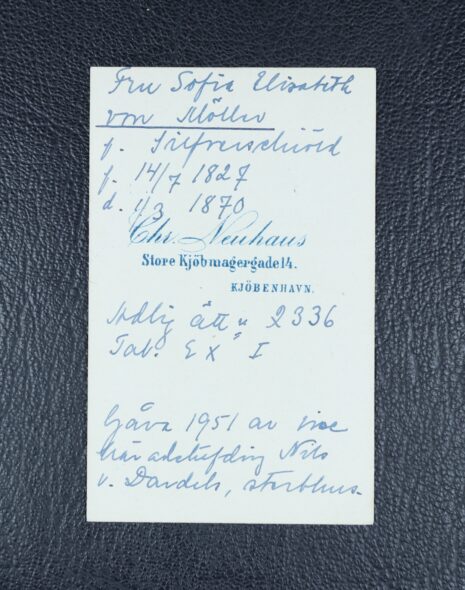 Möller, von, Sofia Elisabet, född friherrinna Silfverschiöld, nr 283. Född 1827-07-14. Död 1870-03-01.