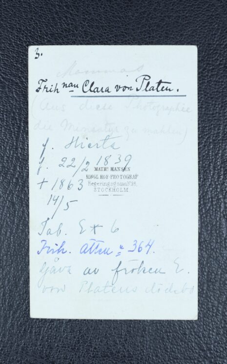 Platen, von, CLARA Virginia, född Hierta, nr 121. Född 1839-02-22. Död 1863-05-14.