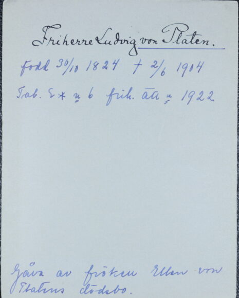 Platen, von, Carl LUDVIG Gustaf. Född 1824-11-30. Död 1904-06-02.