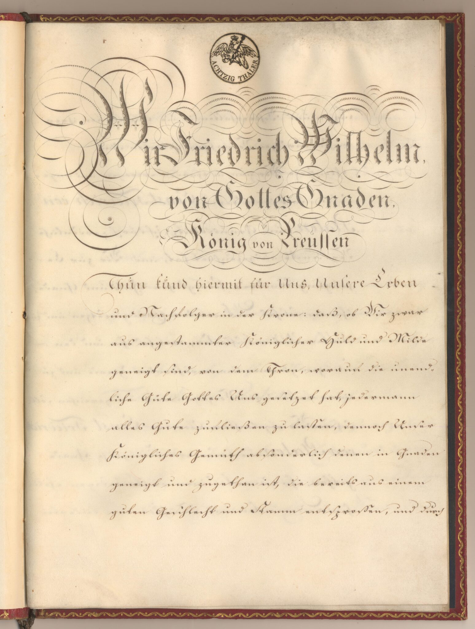 Utnämnd och utfärdat: Fredrik Vilhelm III (kung av Preussen), Berlin, 1816-01-17.