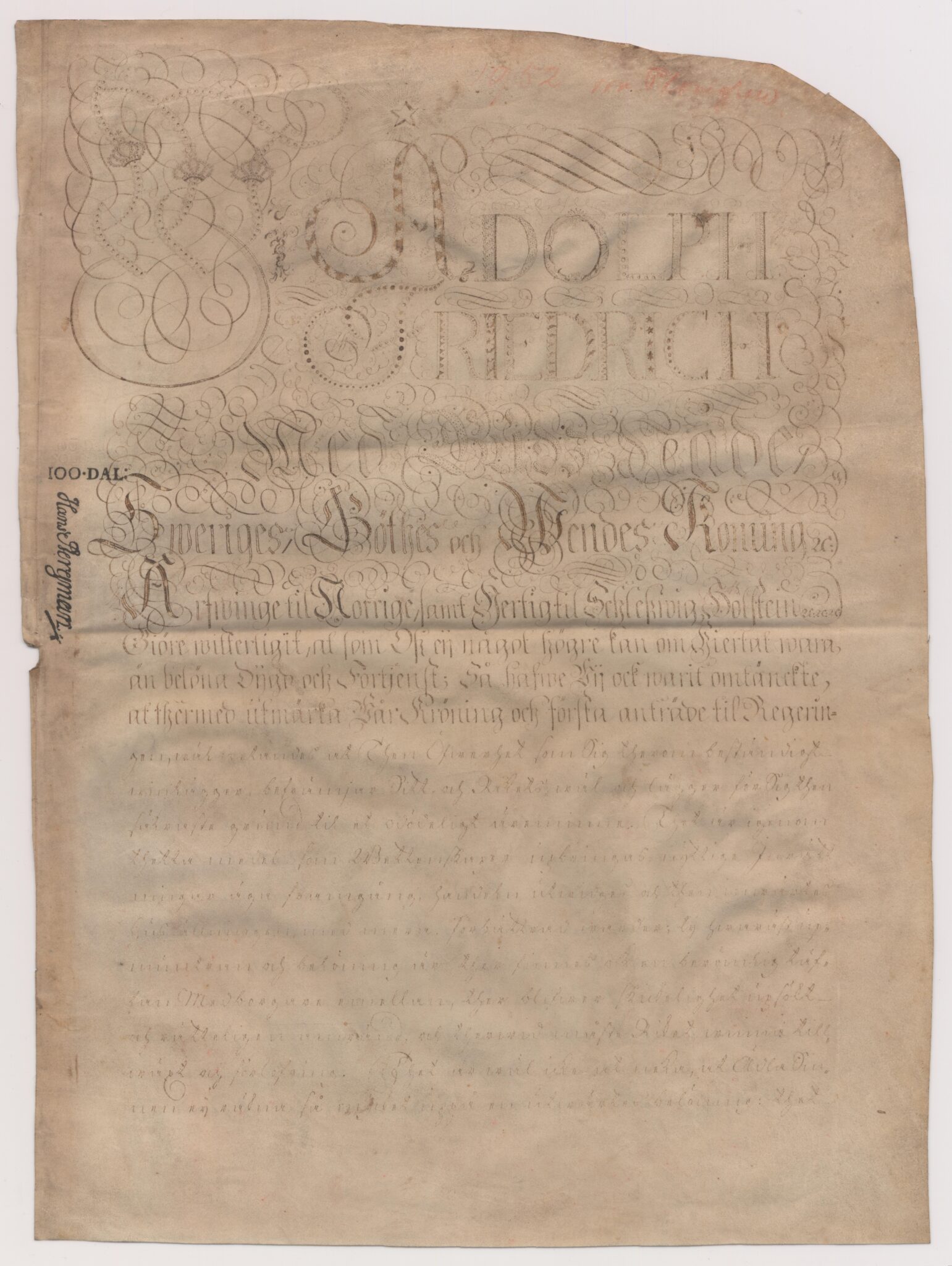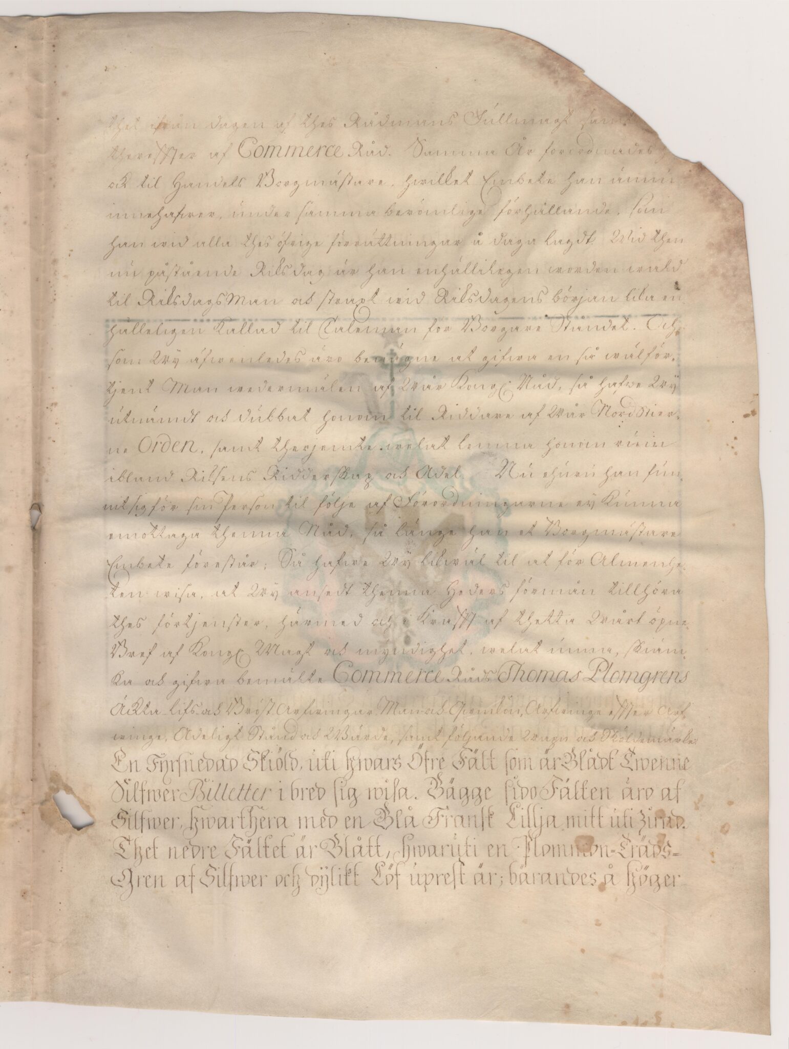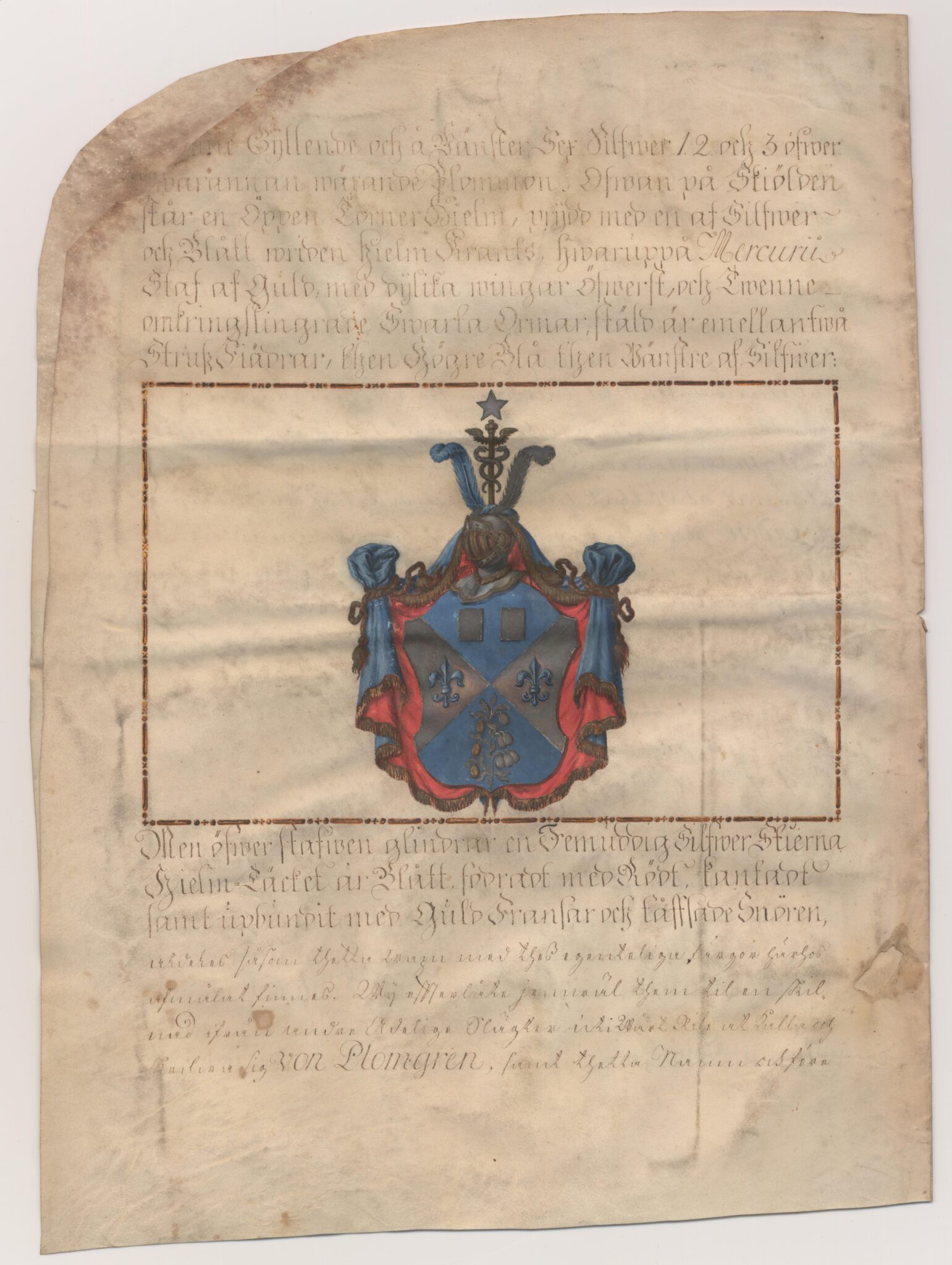 Sköldebrevet i original för adliga ätten von Plomgren, nr 1952.
