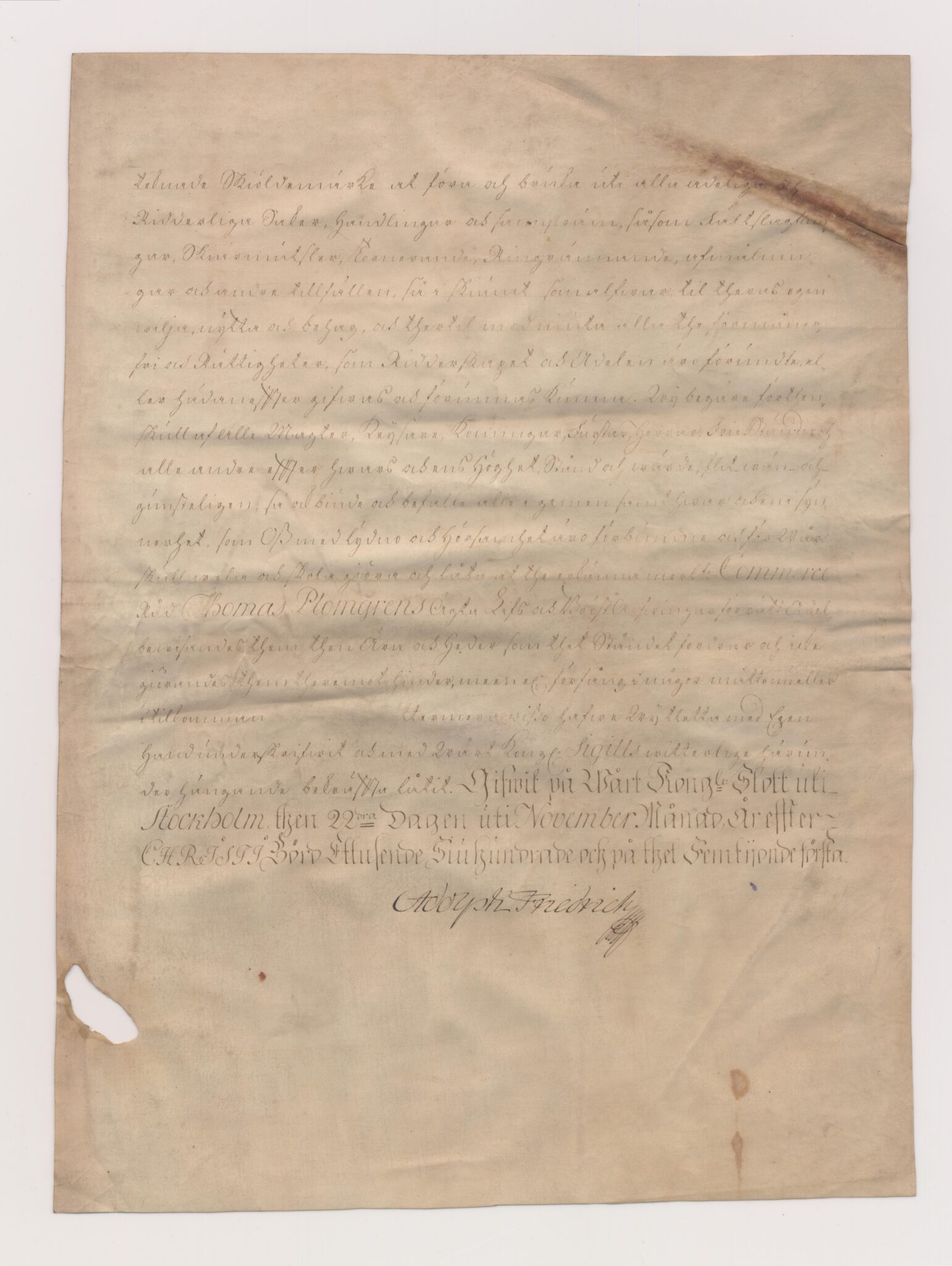 Utnämnd och utfärdat: Adolf Fredrik, Stockholms slott, 1751-11-22.