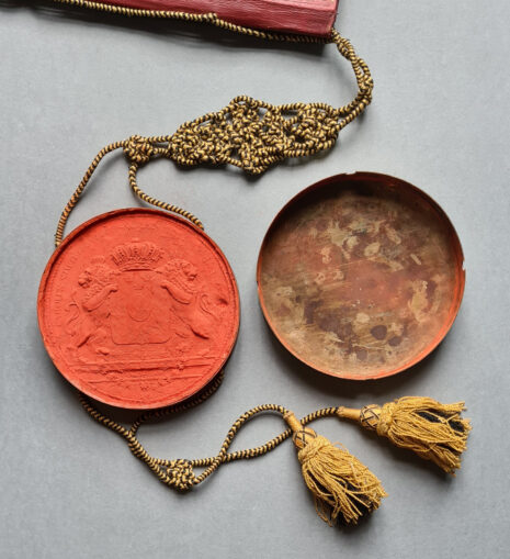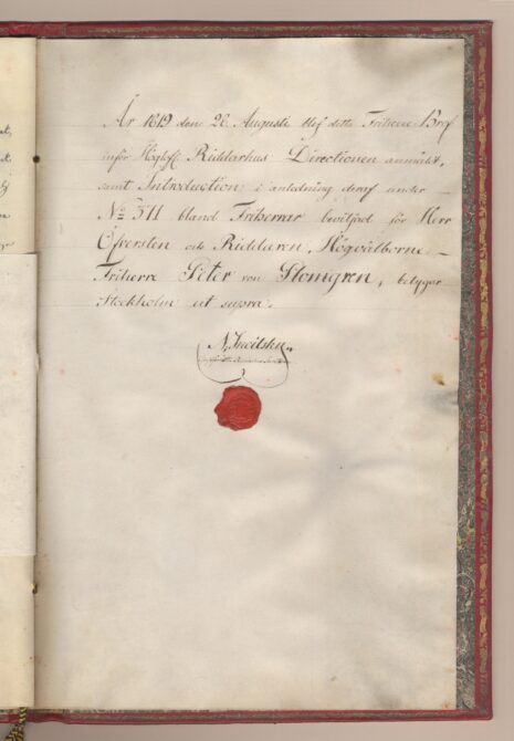 Friherrebrevet i original för friherrliga ätten von Plomgren, nr 371.