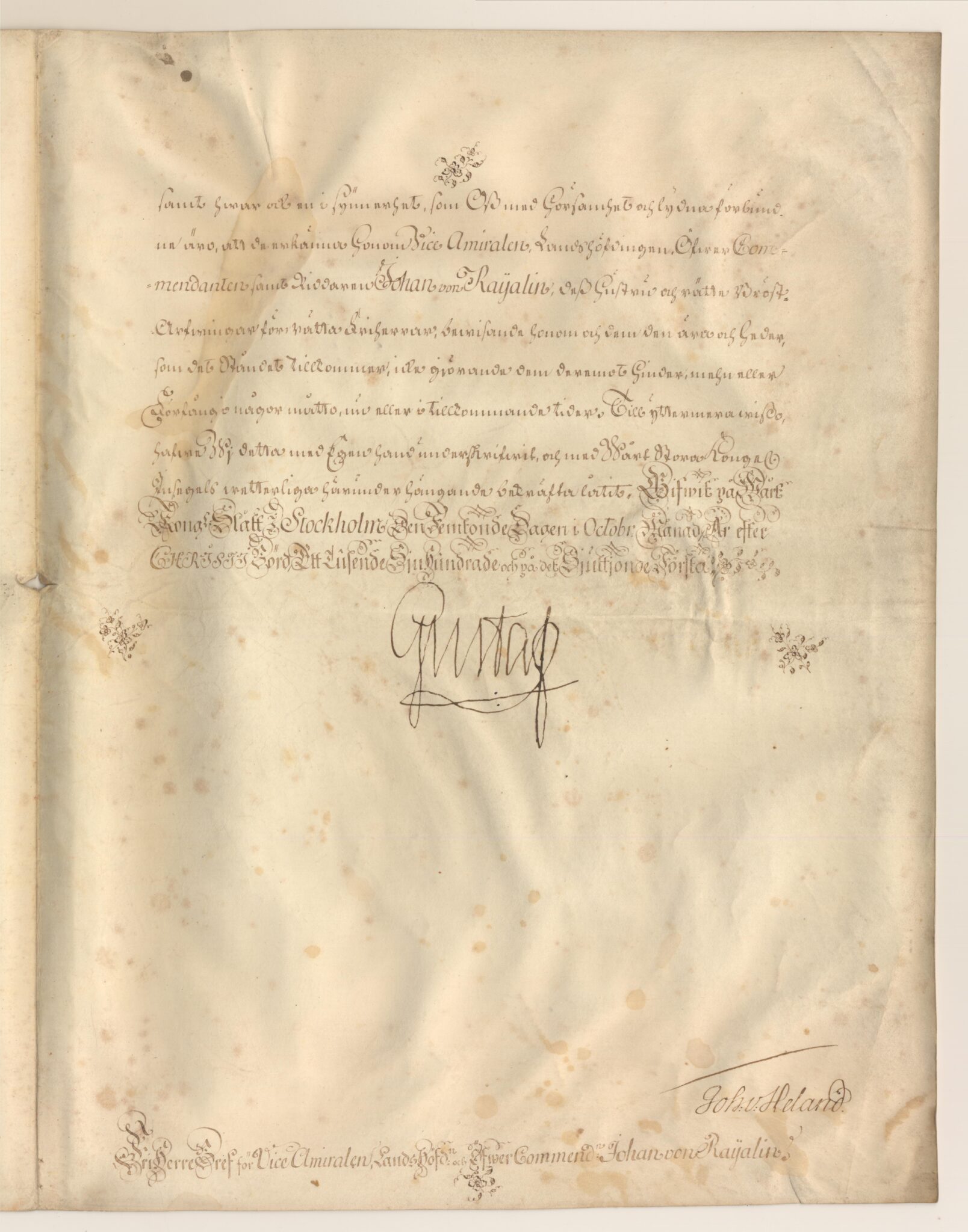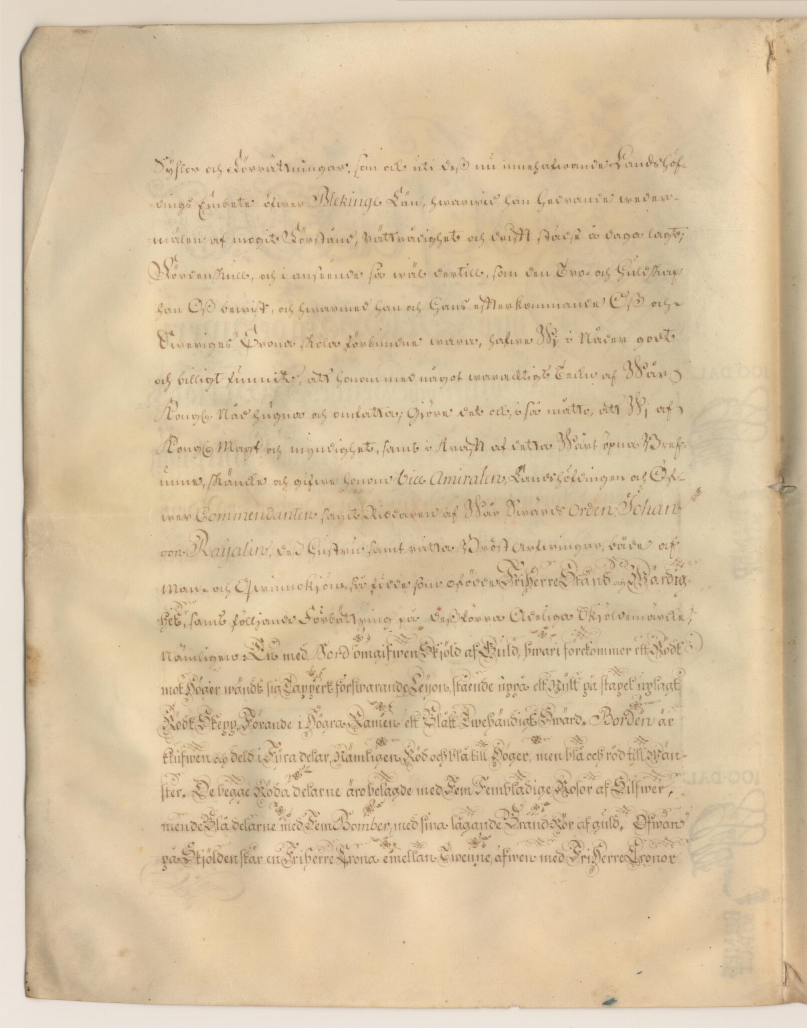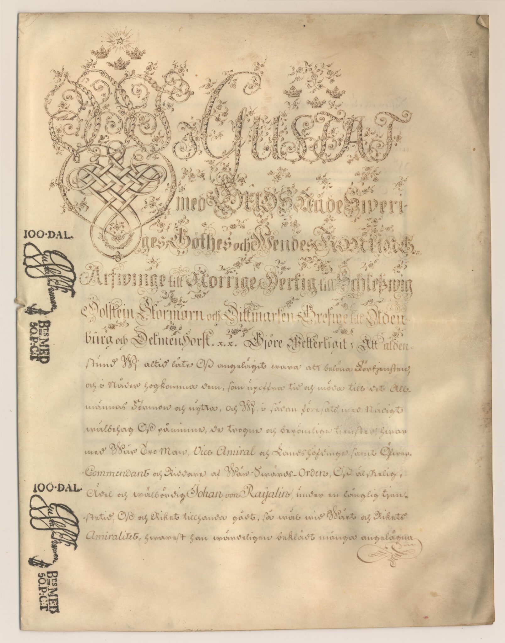 Friherrebrevet i original för utdöda friherrliga ätten von Rajalin, nr 317.