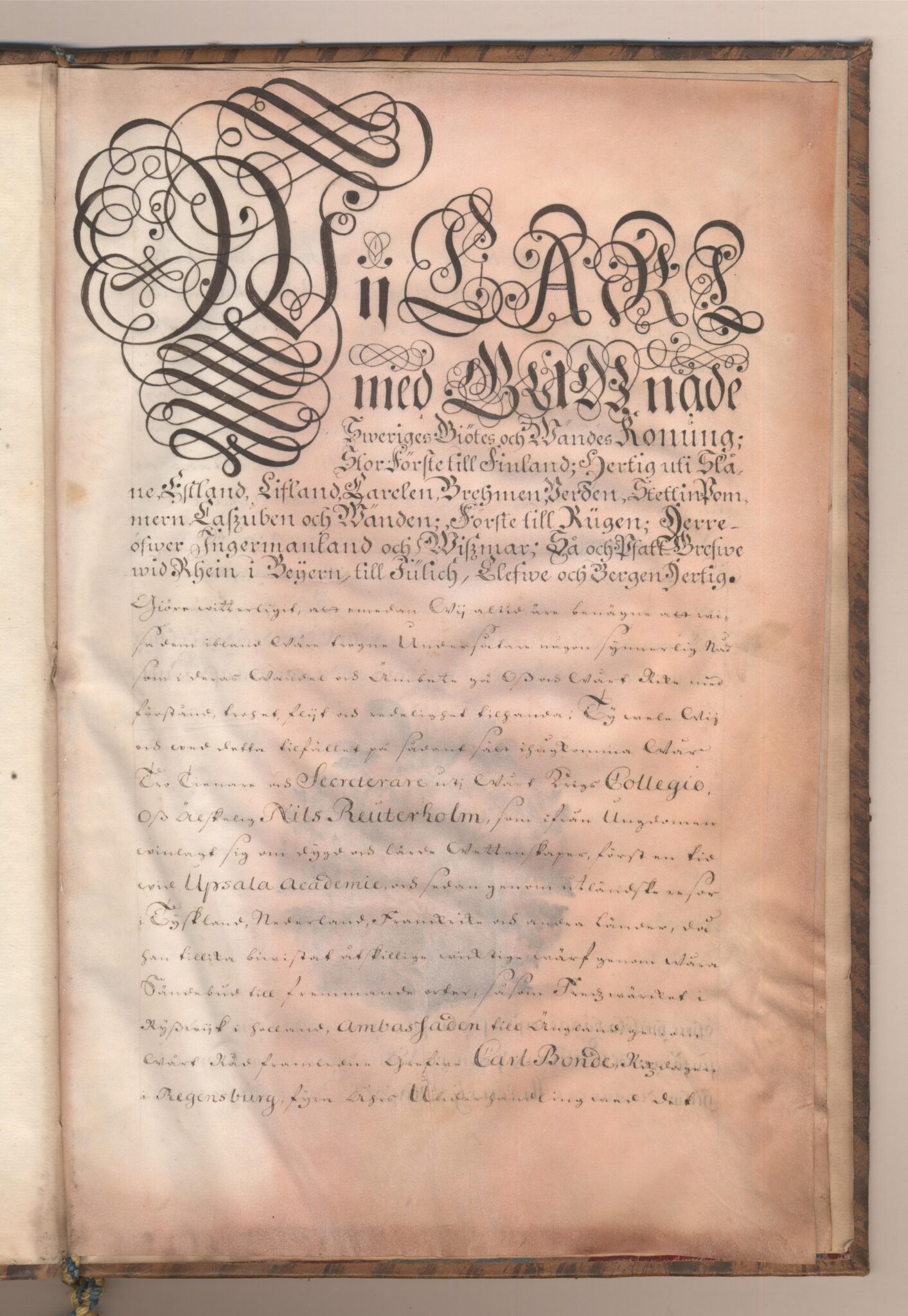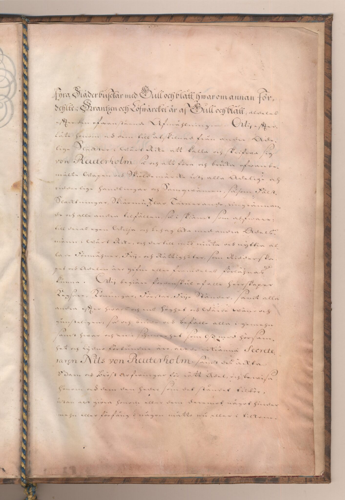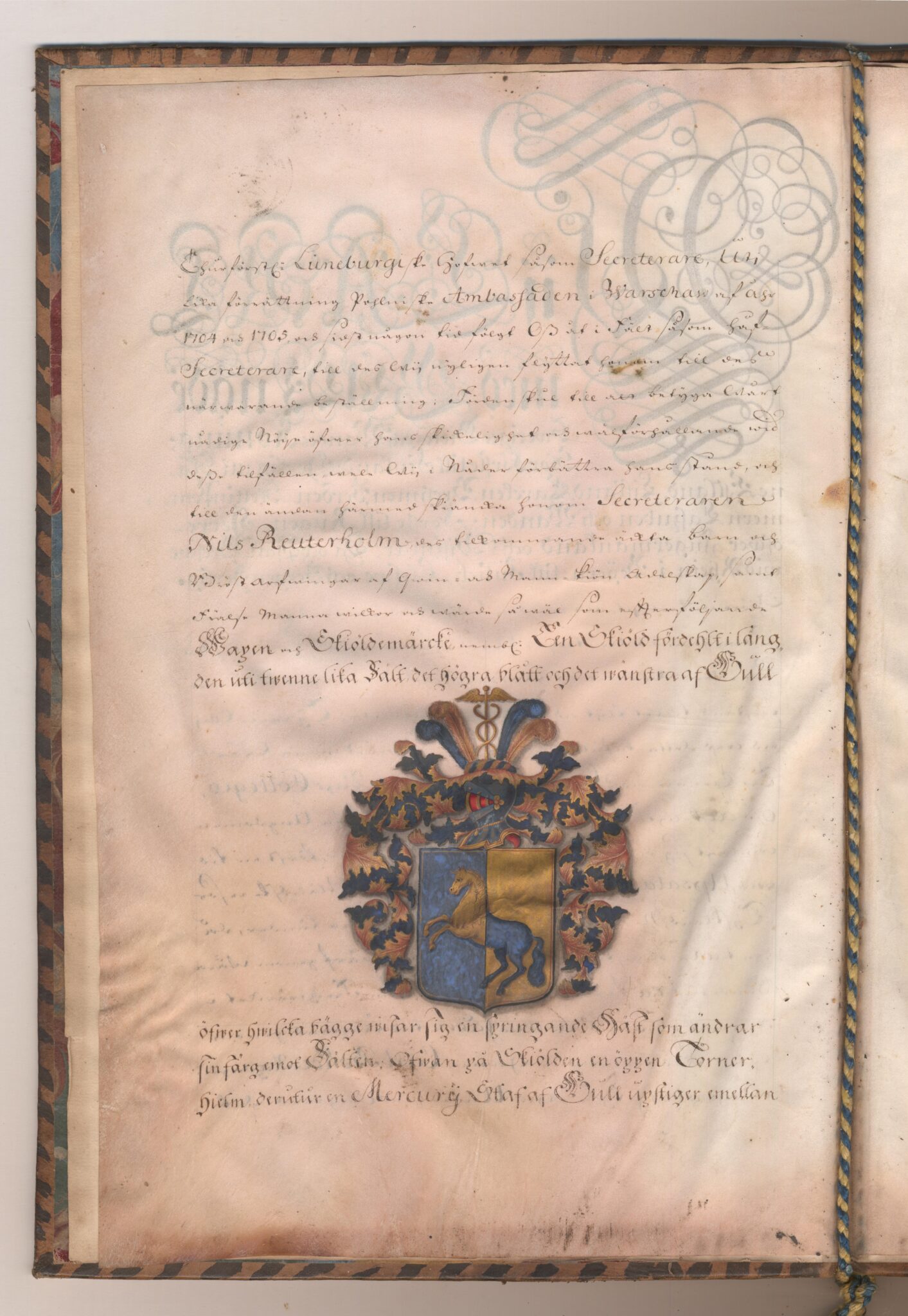 Sköldebrevet i original för utdöda adliga ätten von Reuterholm, nr 1440.