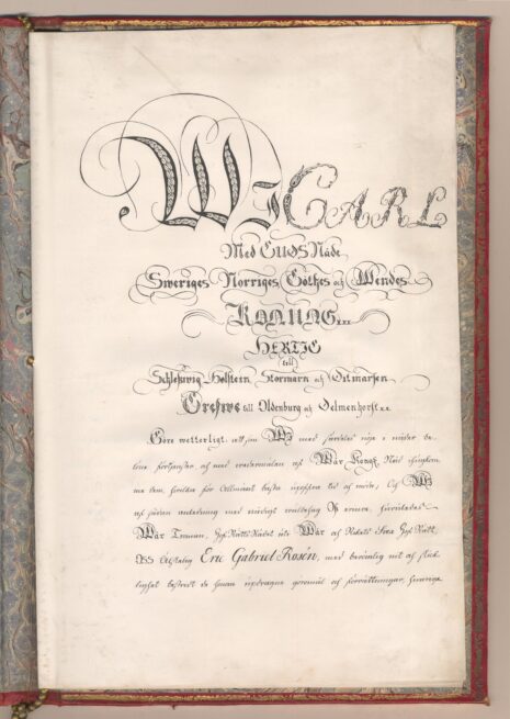 Sköldebrevet i original för utdöda adliga ätten von Rosén, nr 2242.