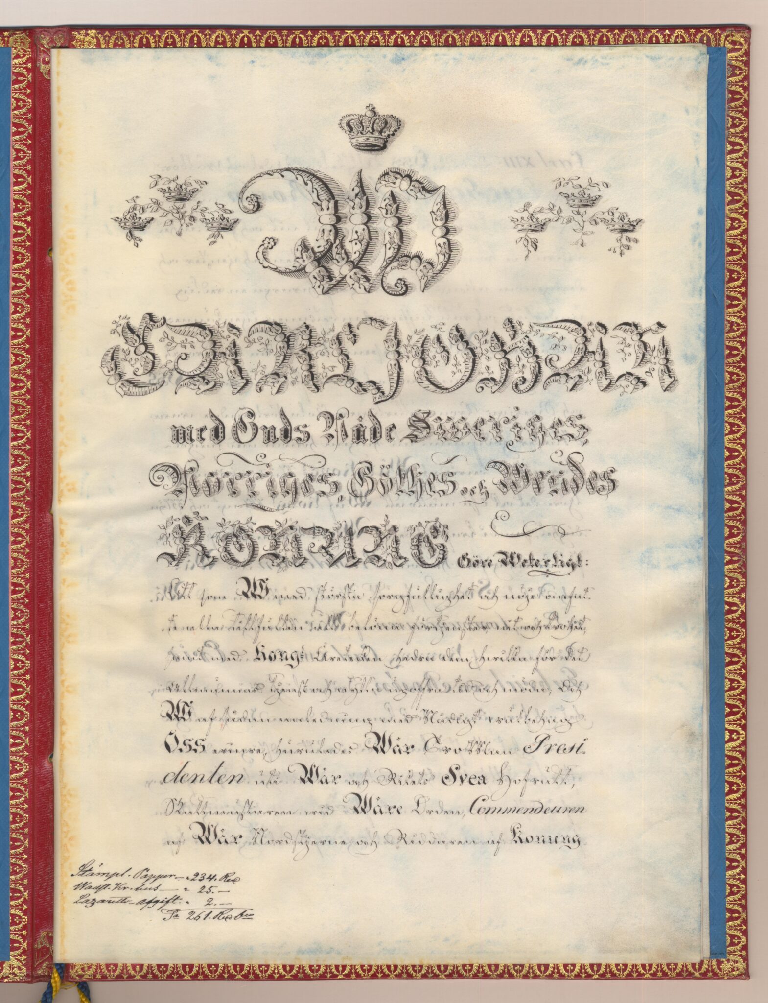 Utfärdat: Oscar I, plats och datum ej angivet.