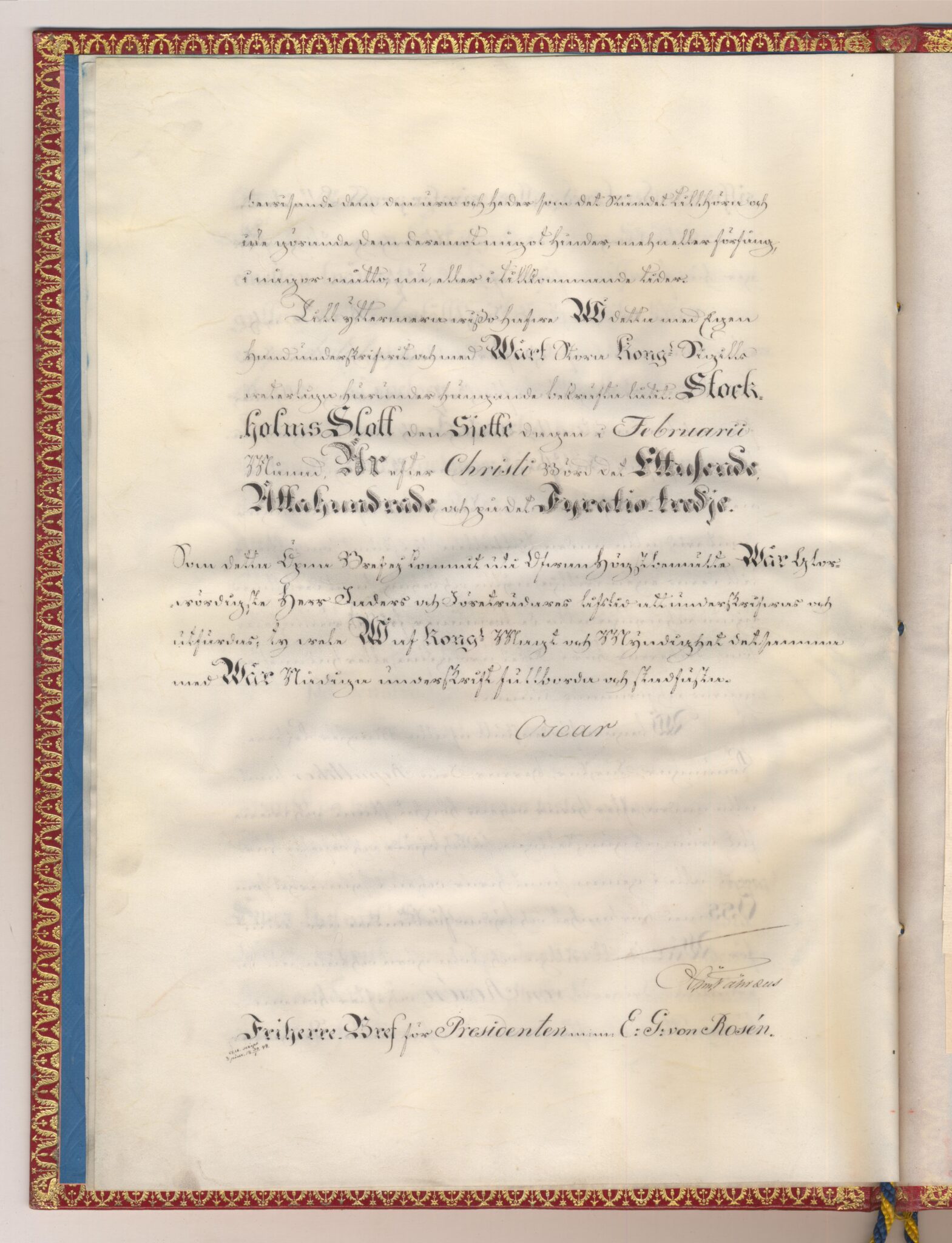 Friherrebrevet i original för utdöda friherrliga ätten von Rosén, nr 397.