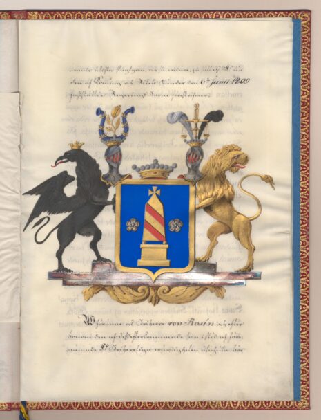 Friherrebrevet i original för utdöda friherrliga ätten von Rosén, nr 397.