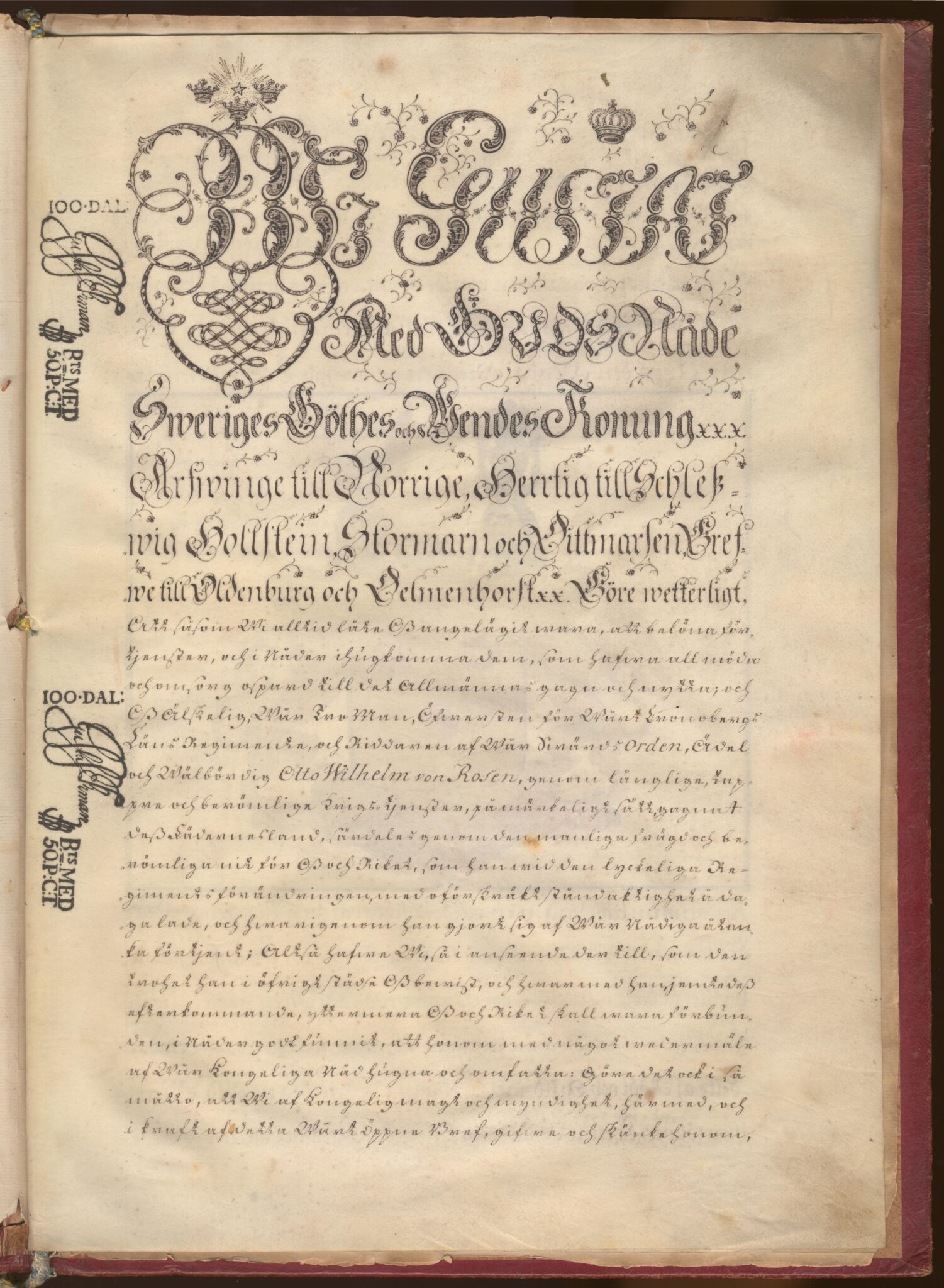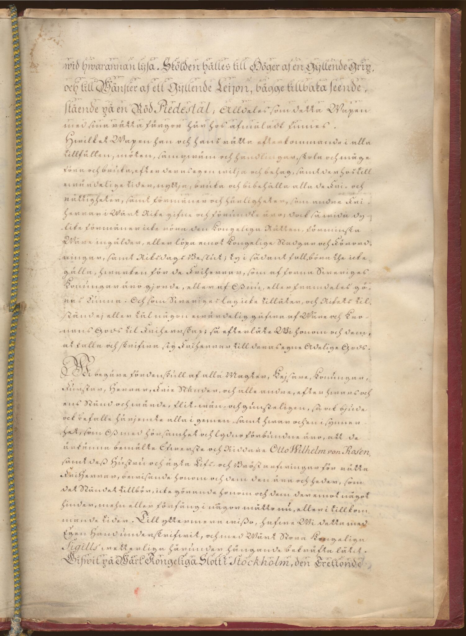 Friherrebrevet i original för friherrliga ätten von Rosen, nr 290.