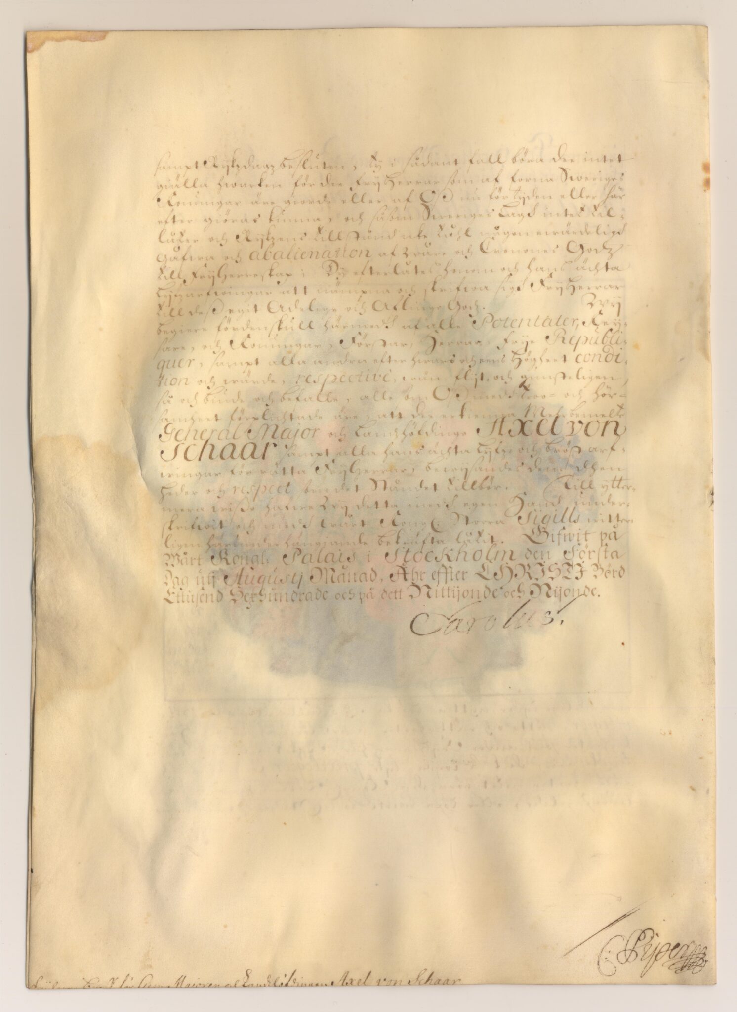 Utnämnd och utfärdat: Karl XII, palatset i Stockholm, 1699-08-01.