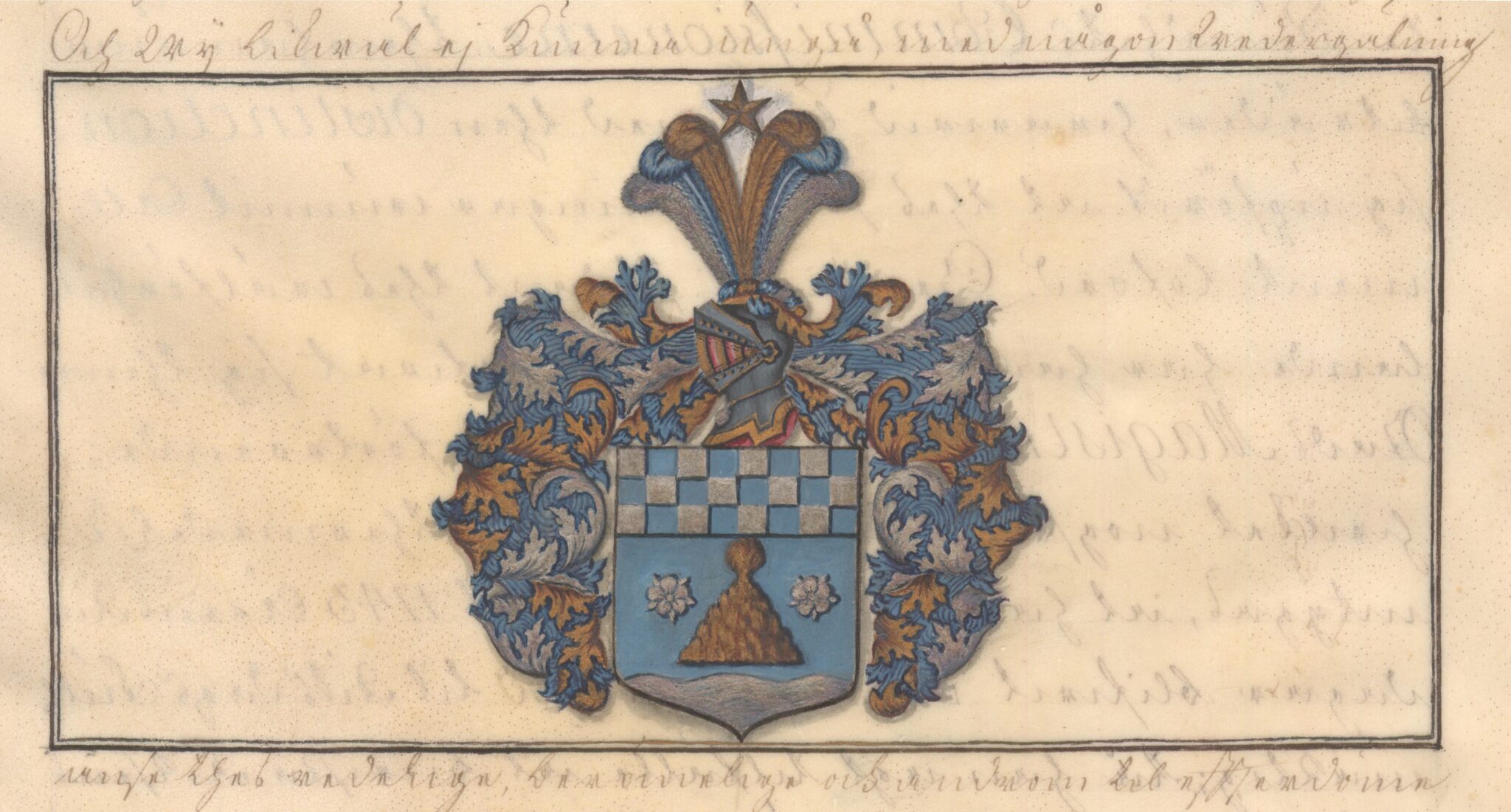 Sköldebrevet i original för utdöda adliga ätten von Schening, nr 1953.