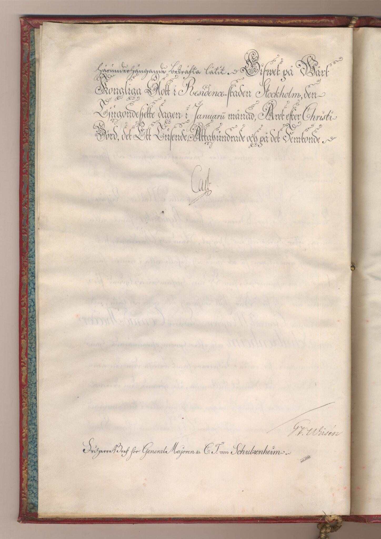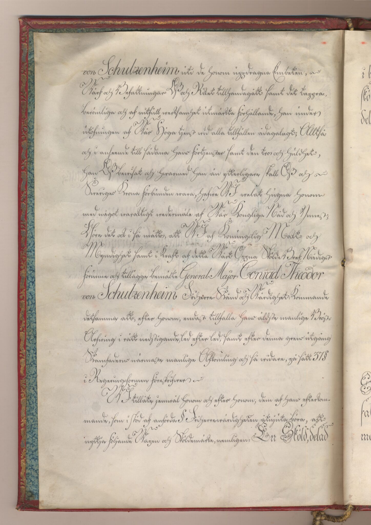 Friherrebrevet i original för utdöda friherrliga ätten von Schulzenheim, nr 350.