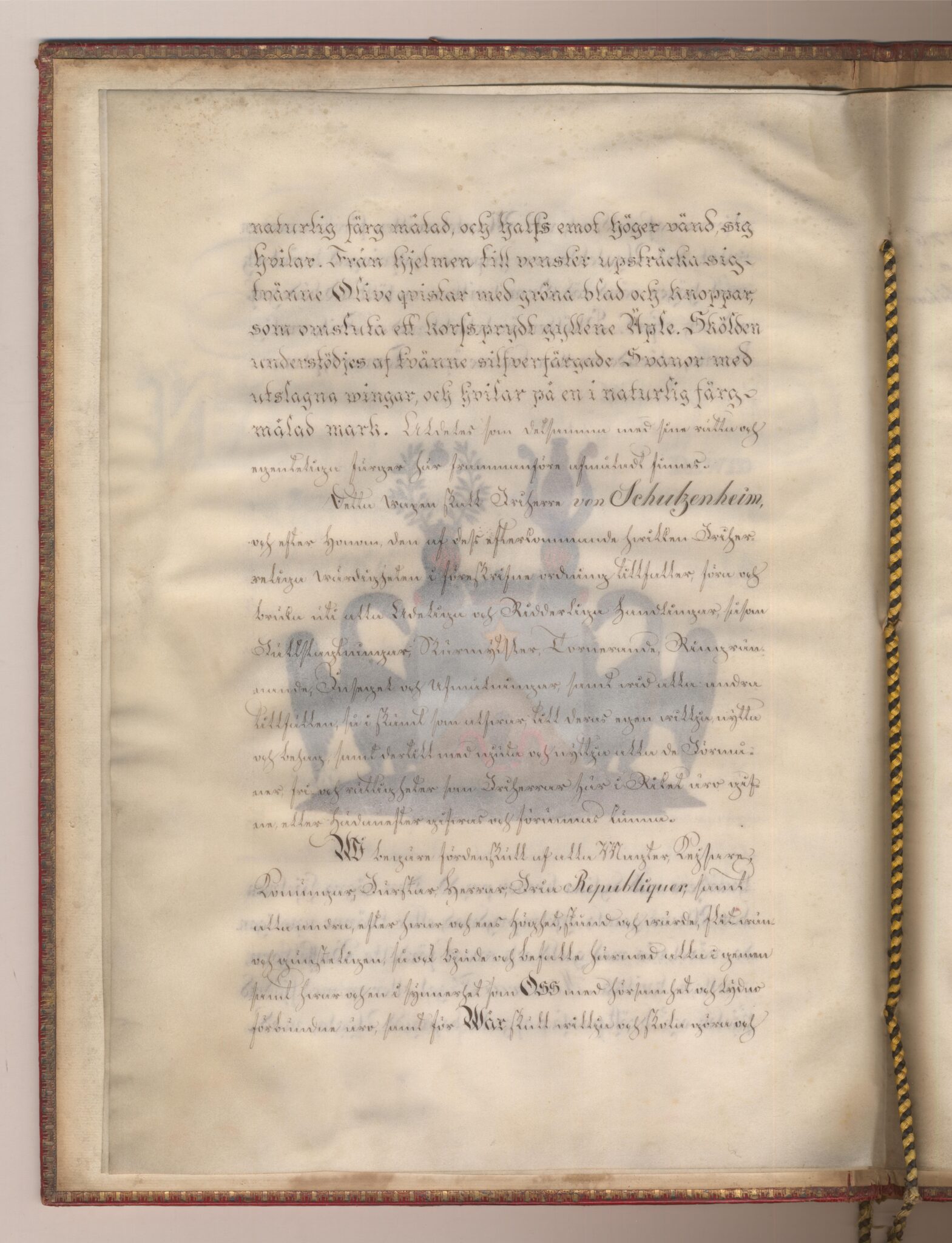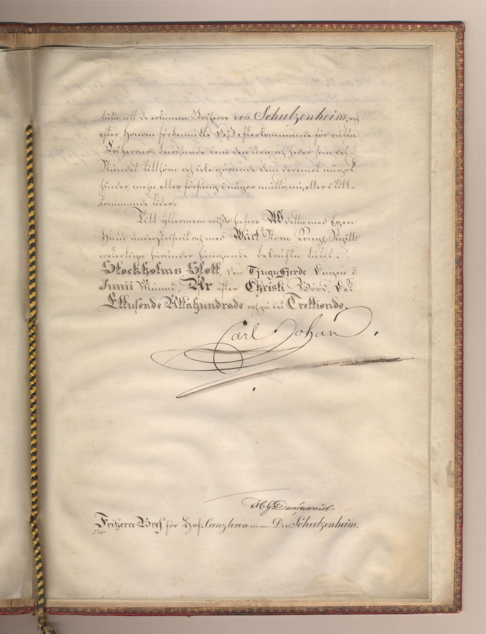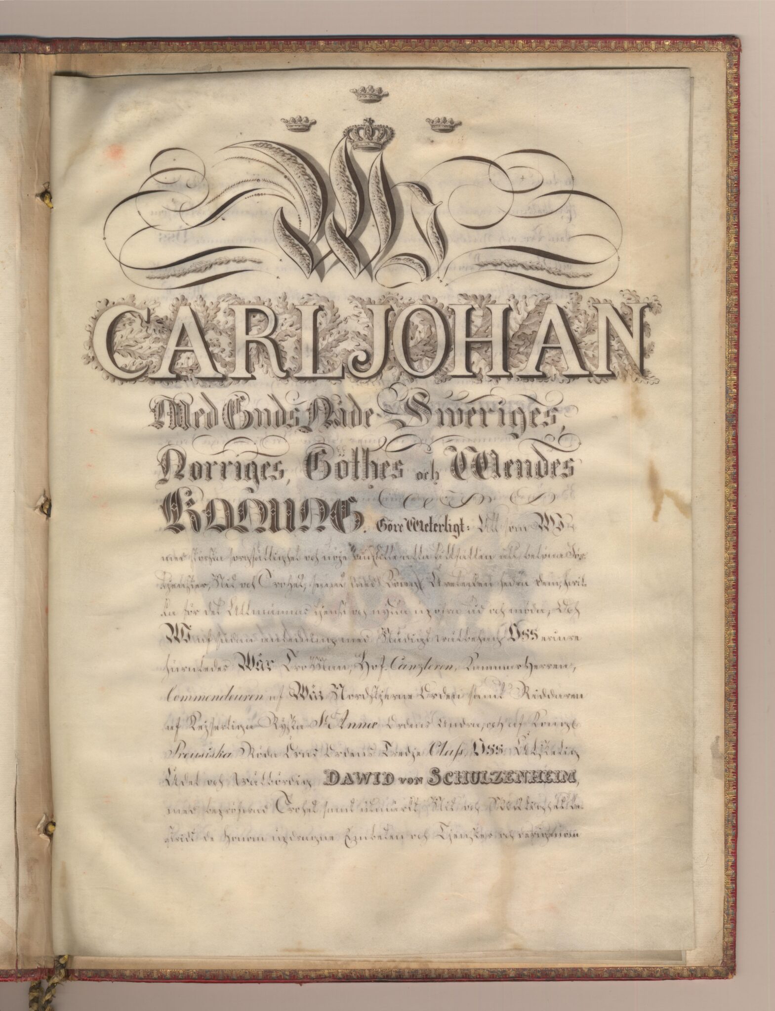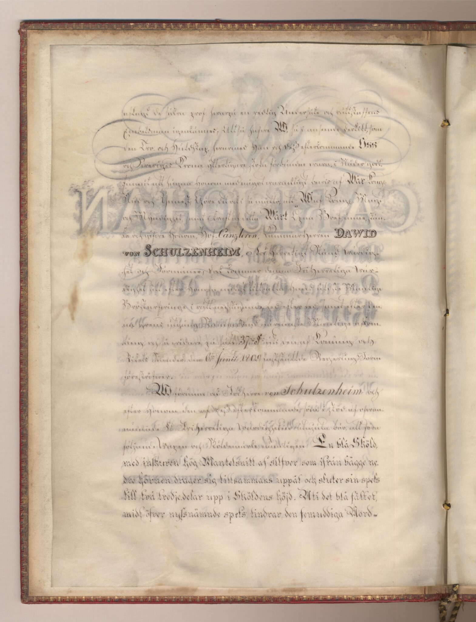 Friherrebrevet i original för friherrliga ätten von Schulzenheim, nr 380.
