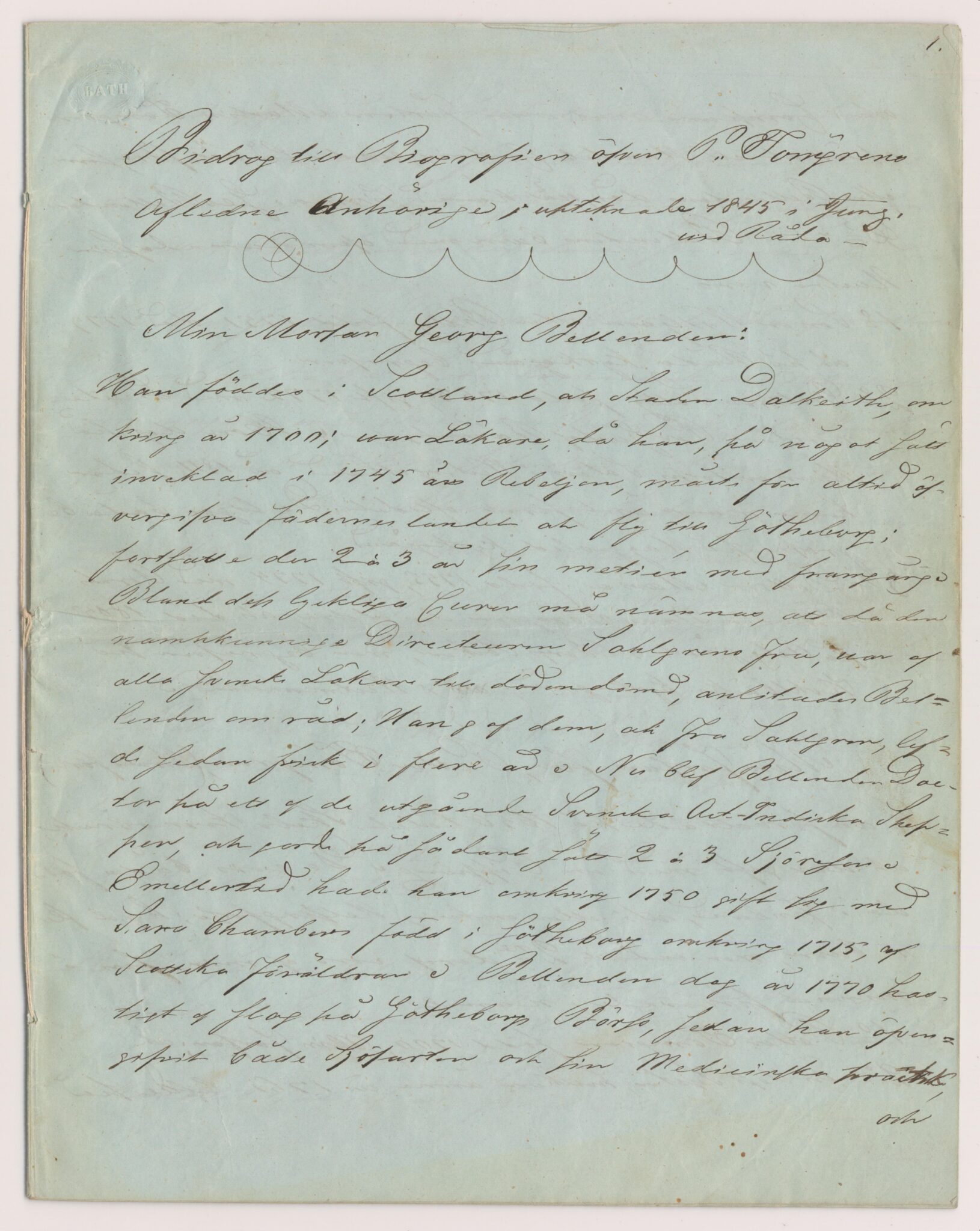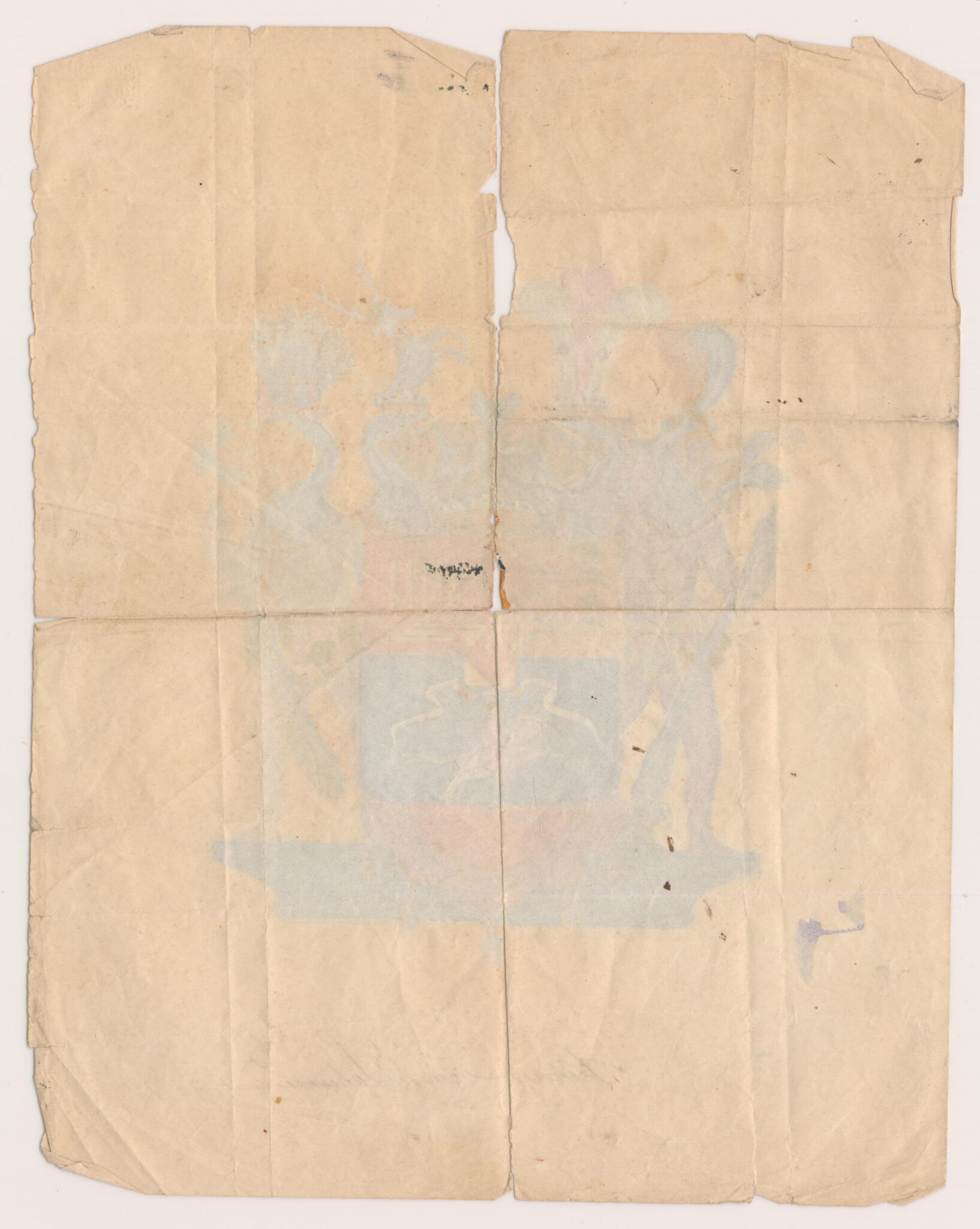 1. Vapenskiss, utkast eller sekundär. Baksida.